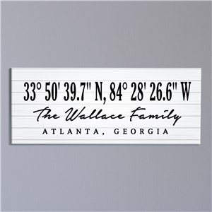 .Personalized Coordinates with White Wood Wall Sign