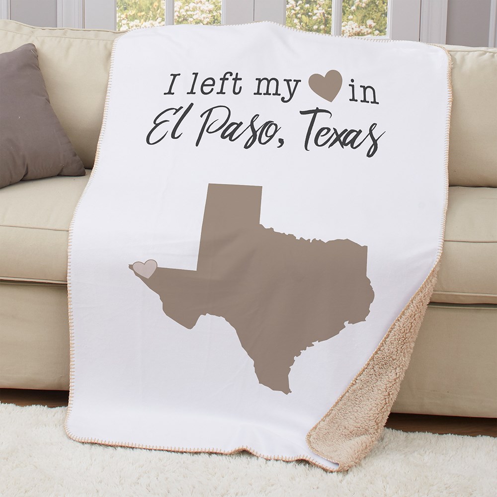 Always remember your roots when cuddled up in our Left My Heart In Personalized State With Symbol Sherpa Blanket.