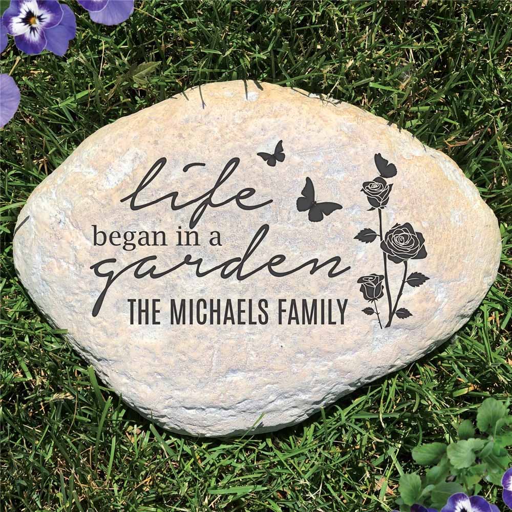 Spring is right around the corner! Give your garden a makeover by adding our Life Began in a Garden Large Engraved Garden Stone. Our Outdoor Garden Stones will be skillfully engraved with any custom message line. Makes a excellent addition to your Spring decor for your home!