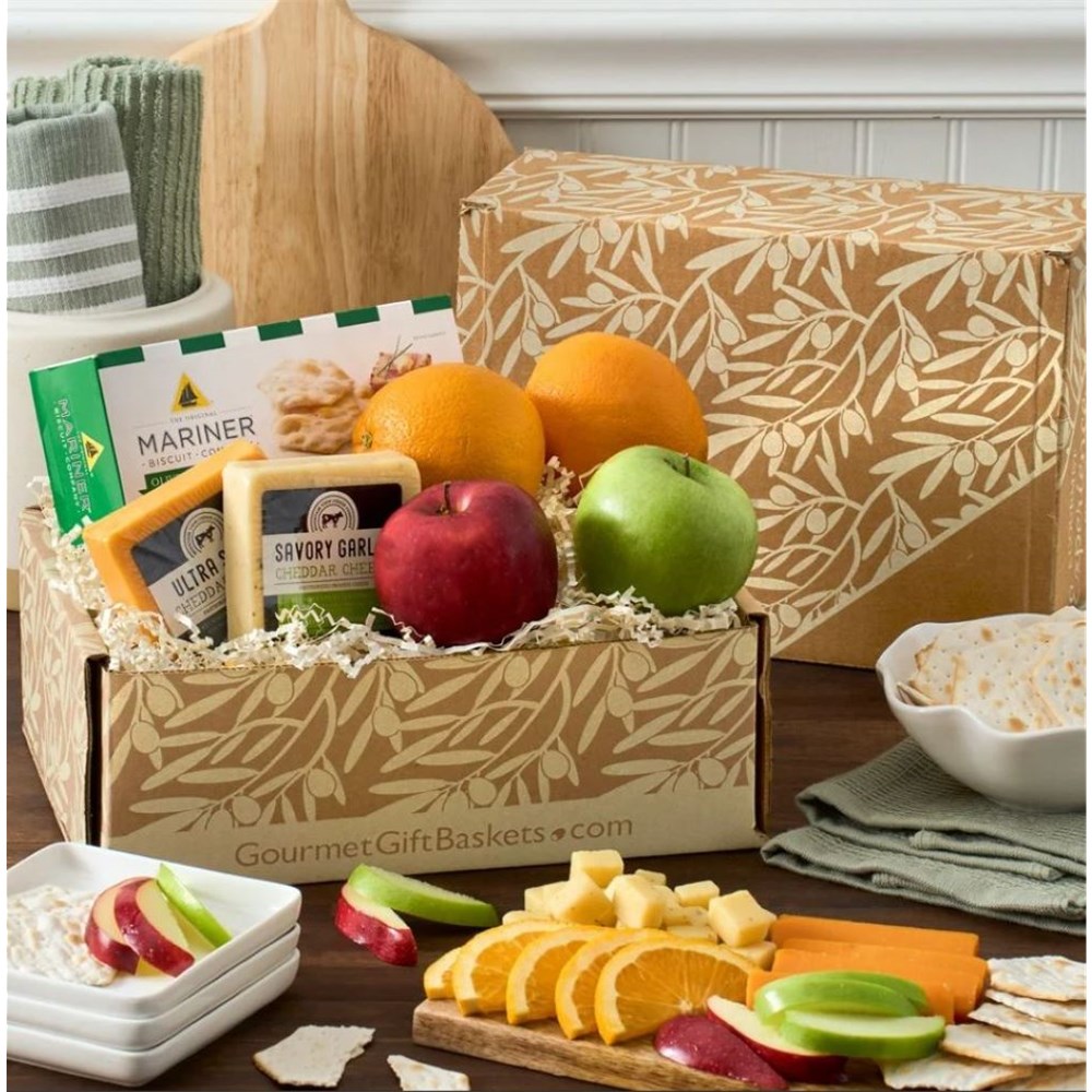 This Local Harvest Fruit Gift Box is the perfect combination of delicious fruit and savory snacks.