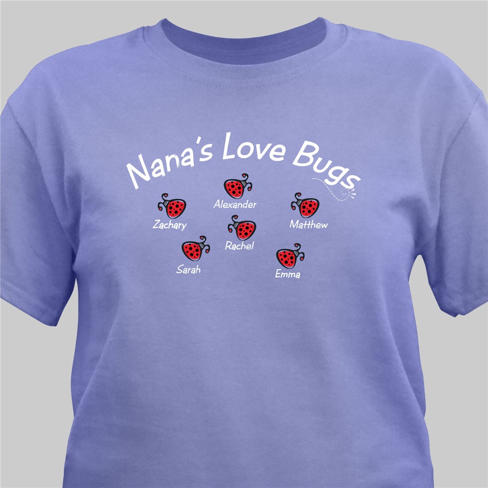 The love between a Mother & her children is something that lasts forever. Honor your Mom, Grandmother, Aunt or Nana with her own Personalized Love Bug T-Shirt which proudly displays all of the love you share each & every day.