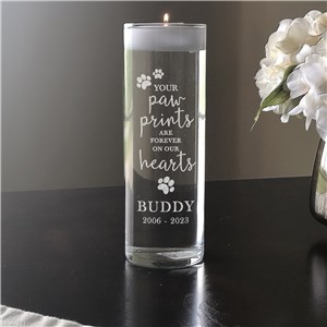.Engraved Paw Prints On My Heart Memorial Floating Candle Vase