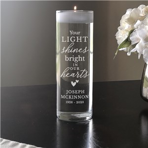 .Engraved Your Light Shines Bright Memorial Floating Candle Vase