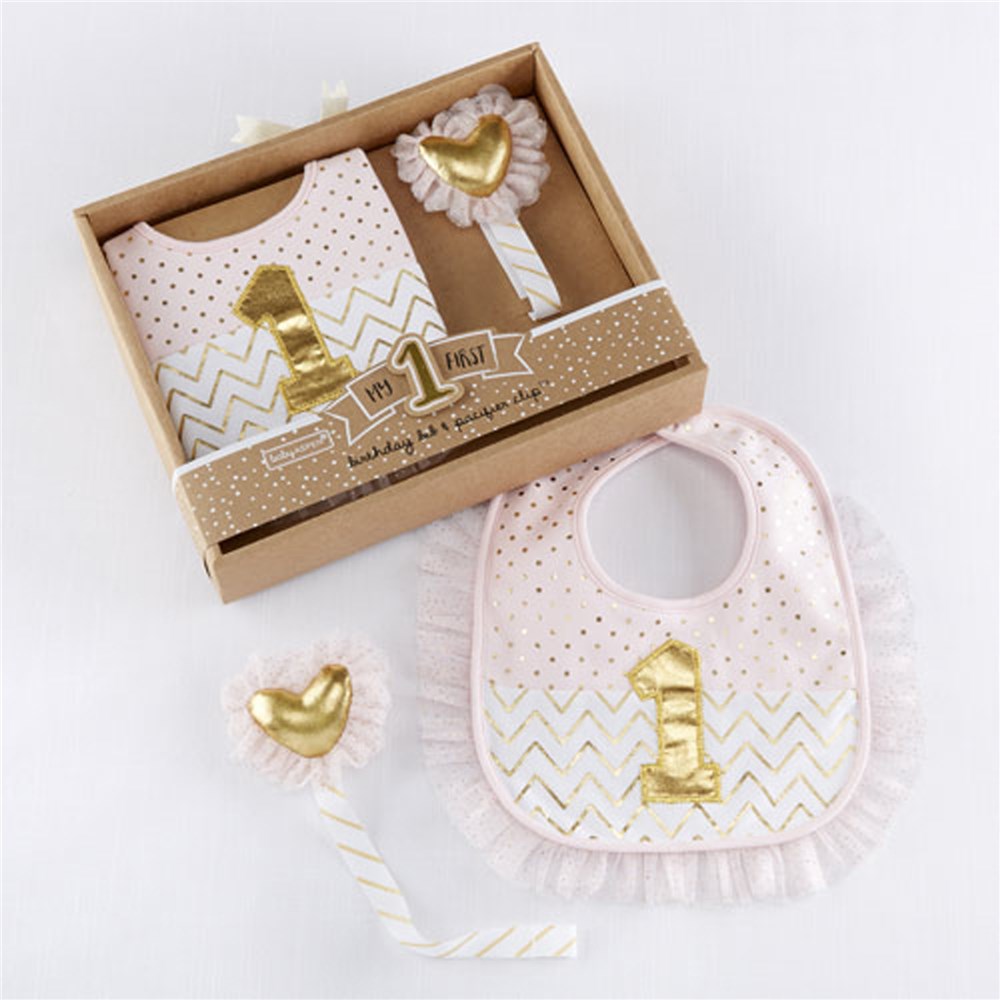 My First Birthday Set for Baby Girl is the perfect gift set to celebrate your little darling's first birthday! Gifts For 1 Year Old Baby Girl help remember this very special milestone in such a pretty way!