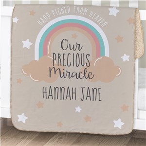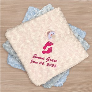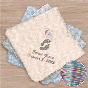 .Embroidered Baby Feet With Rainbow Thread Curly Plush Baby Blanket