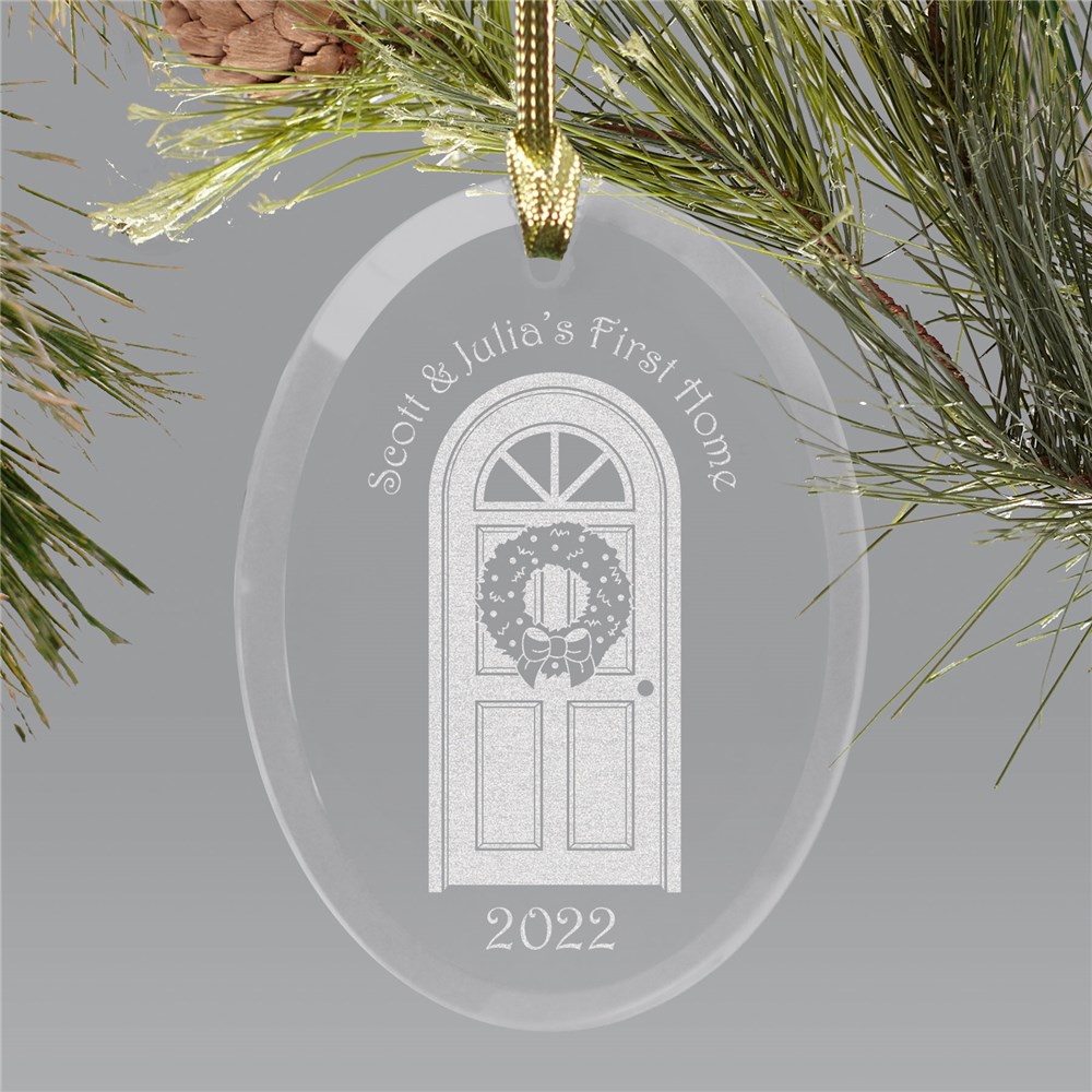 Commemorate your very first Christmas in your very first home together with this beautifully etched glass Christmas ornament. Personalized with any one line custom message and year, this ornament becomes a keepsake you'll always enjoy. It makes a sweet wedding ornament or excellent house warming gift idea.