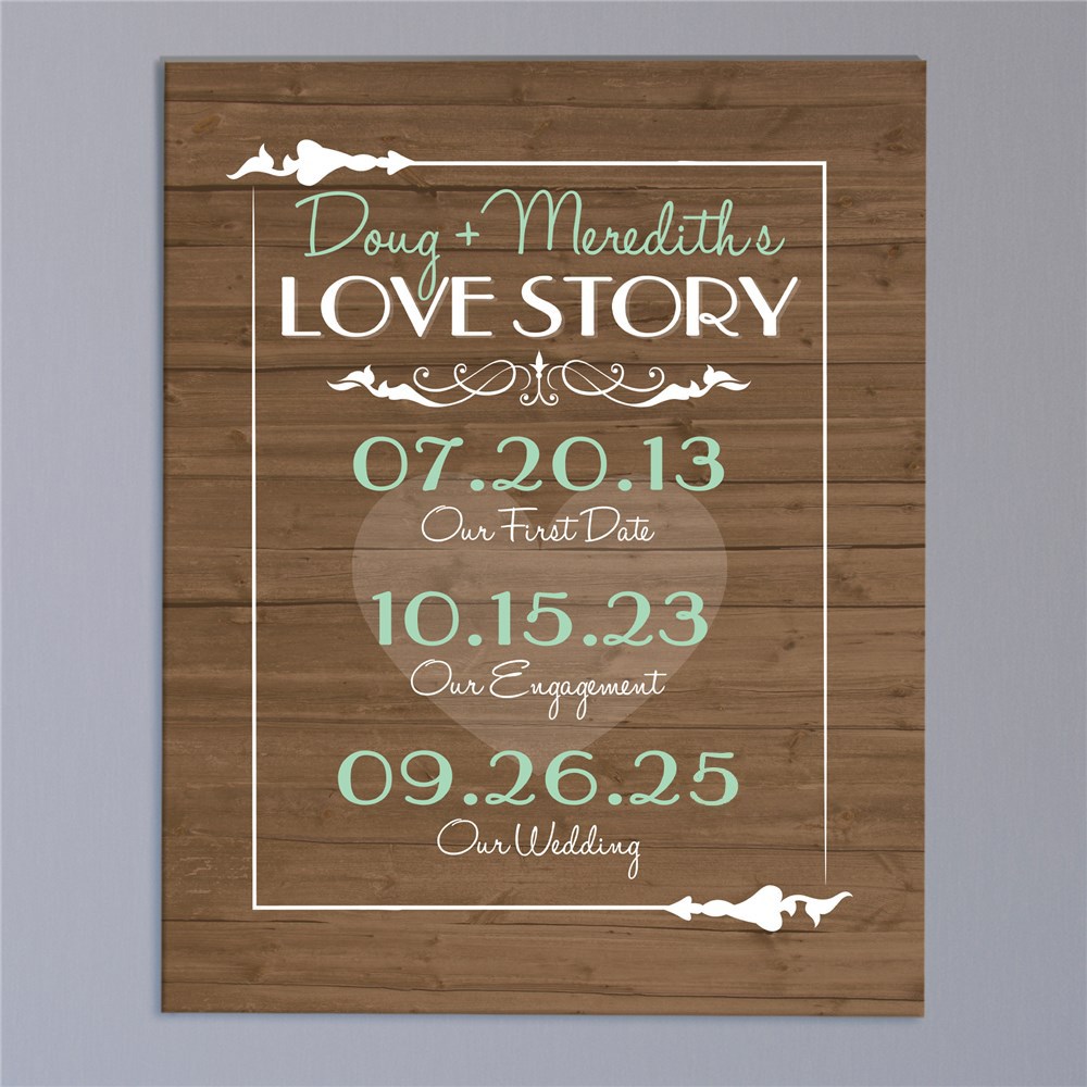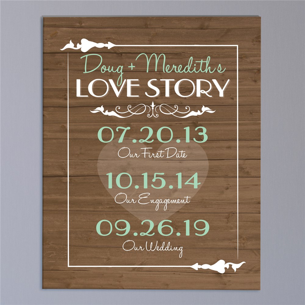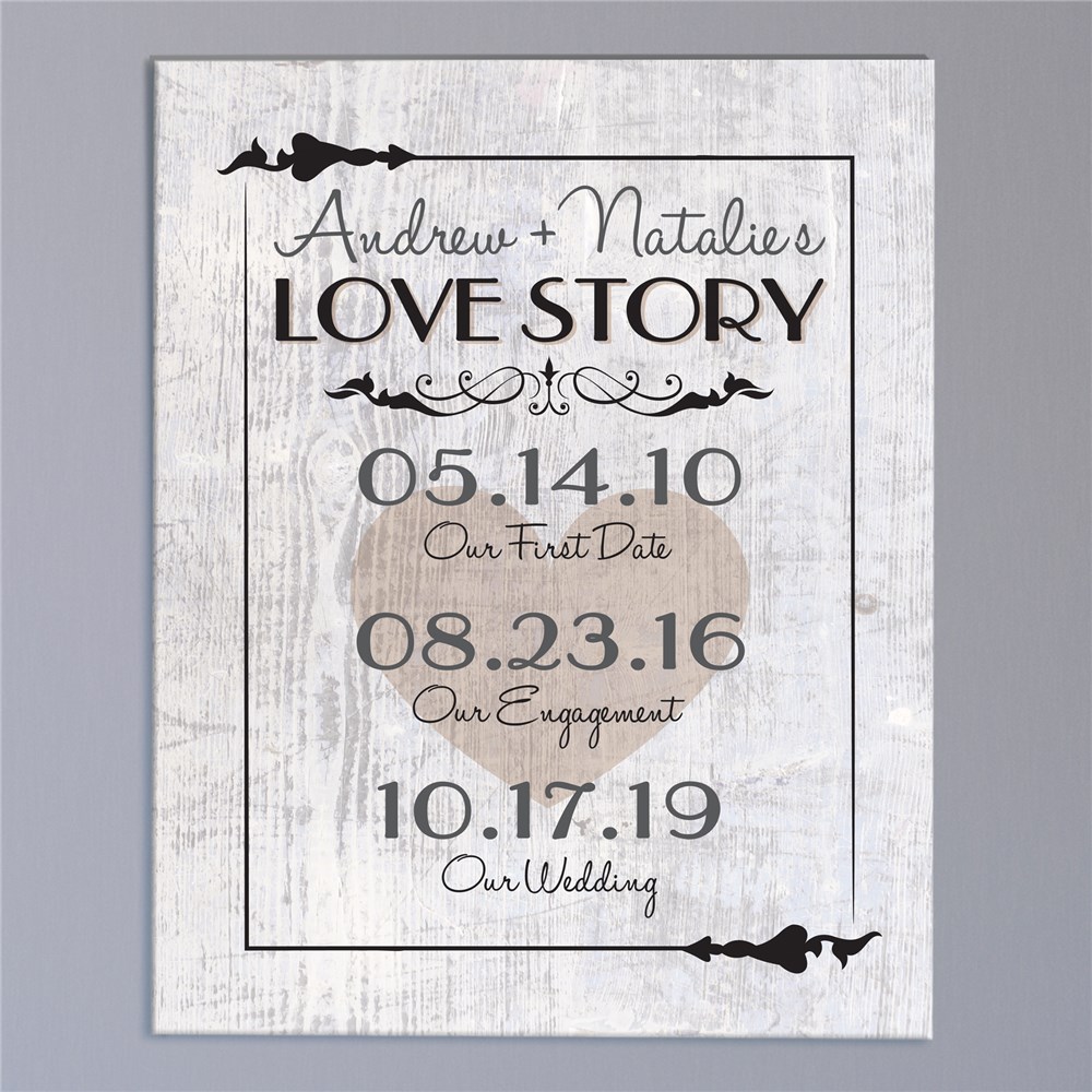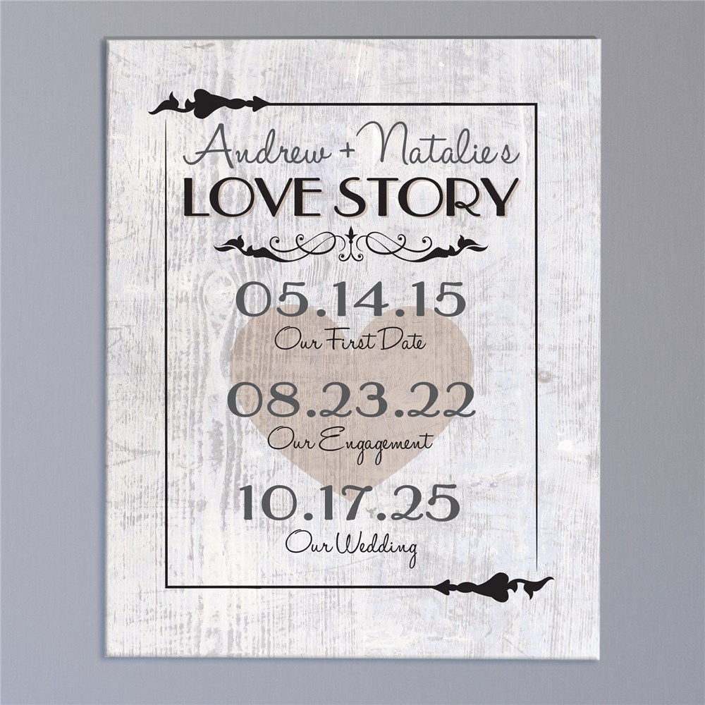 Our Love Story Wall Canvas celebrates your personal love story. This Couples Canvas print has gallery wrapped edges so it is perfect to hang with or without a frame.