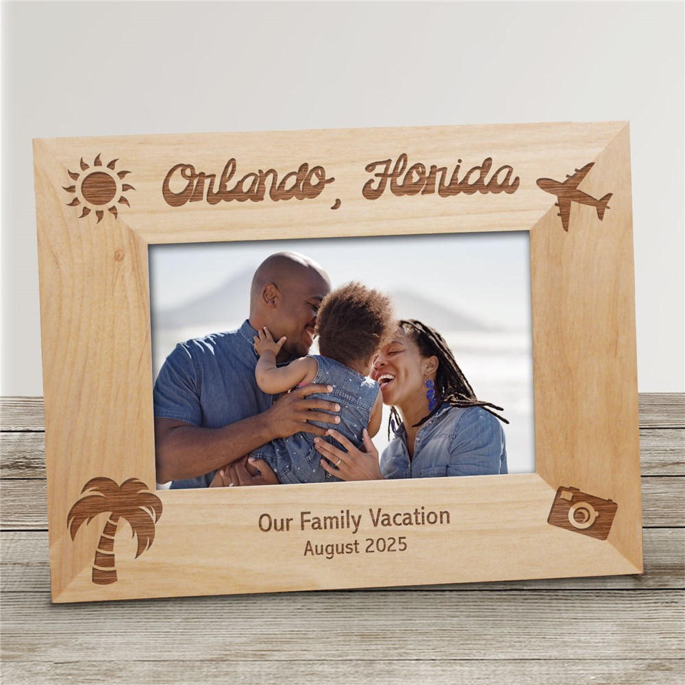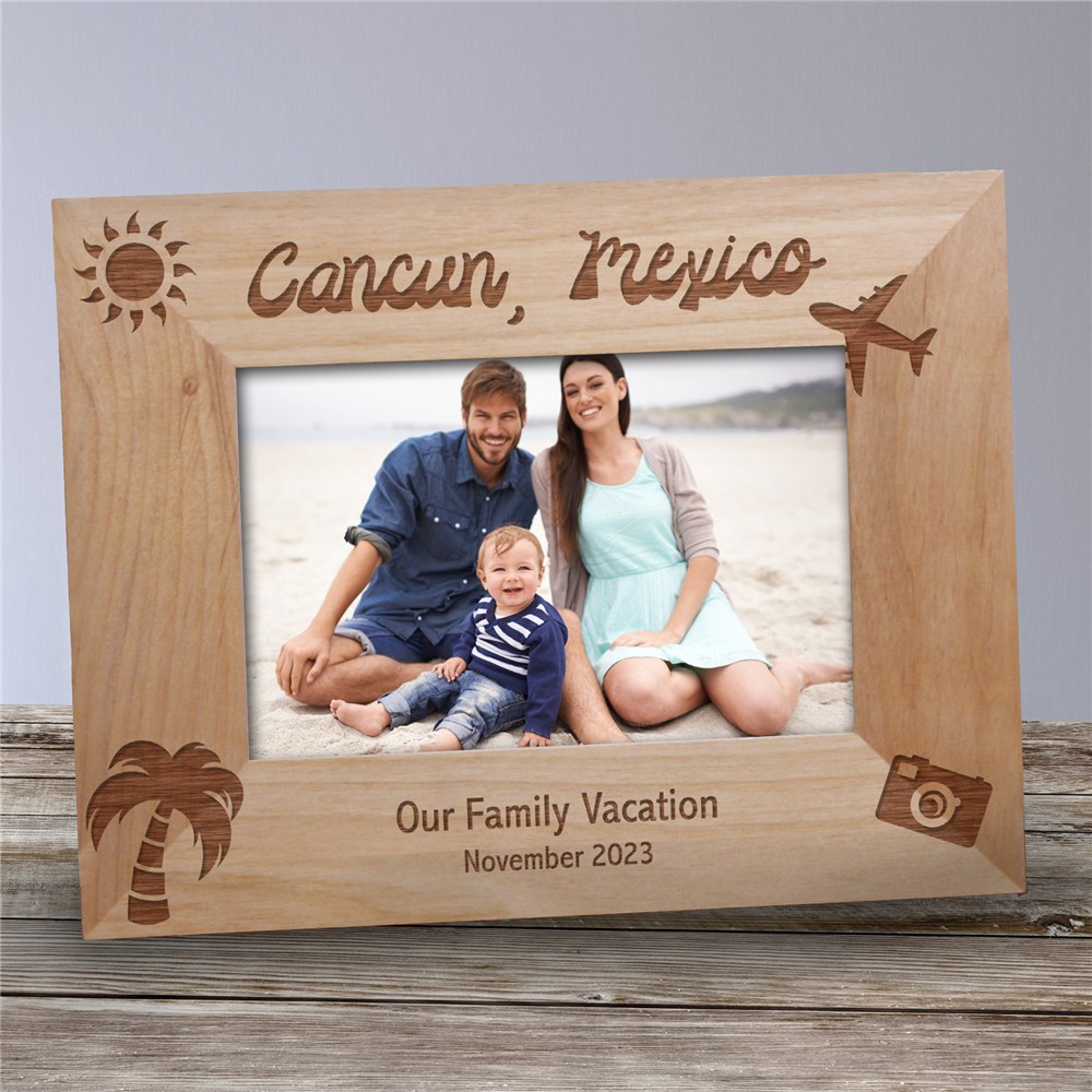 Reflect on how many great memories you had on a family vacation with Personalized Wood Picture Frames. To show family and friends how great of a time you had on your family vacation personalize your own frame. These Vacation Personalized Wooden Picture Frames will really glow in your house because of all the memories it has behind it. Your Personalized Vacation Picture Frame comes in three sizes, please choose from, 4"x6", 5"x7" and 8"x10". Easel back allows for desk display. Wedding frame includes FREE Personalization! Personalized with one line message on the top of the frame and two lines on the bottom. (i.e. Cancun Mexico/Our Family Vacation/November 2009)