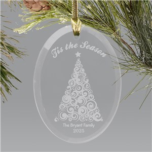 .Personalized Christmas Dog Breeds Oval Glass Ornament