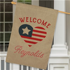 .Personalized Patriotic Heart Burlap Garden Flag