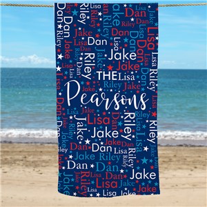 .Personalized Red White and Blue Word Art Beach Towel