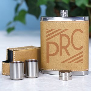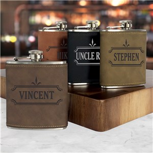 .Engraved Golf Silhouette Club Name Leatherette Flask