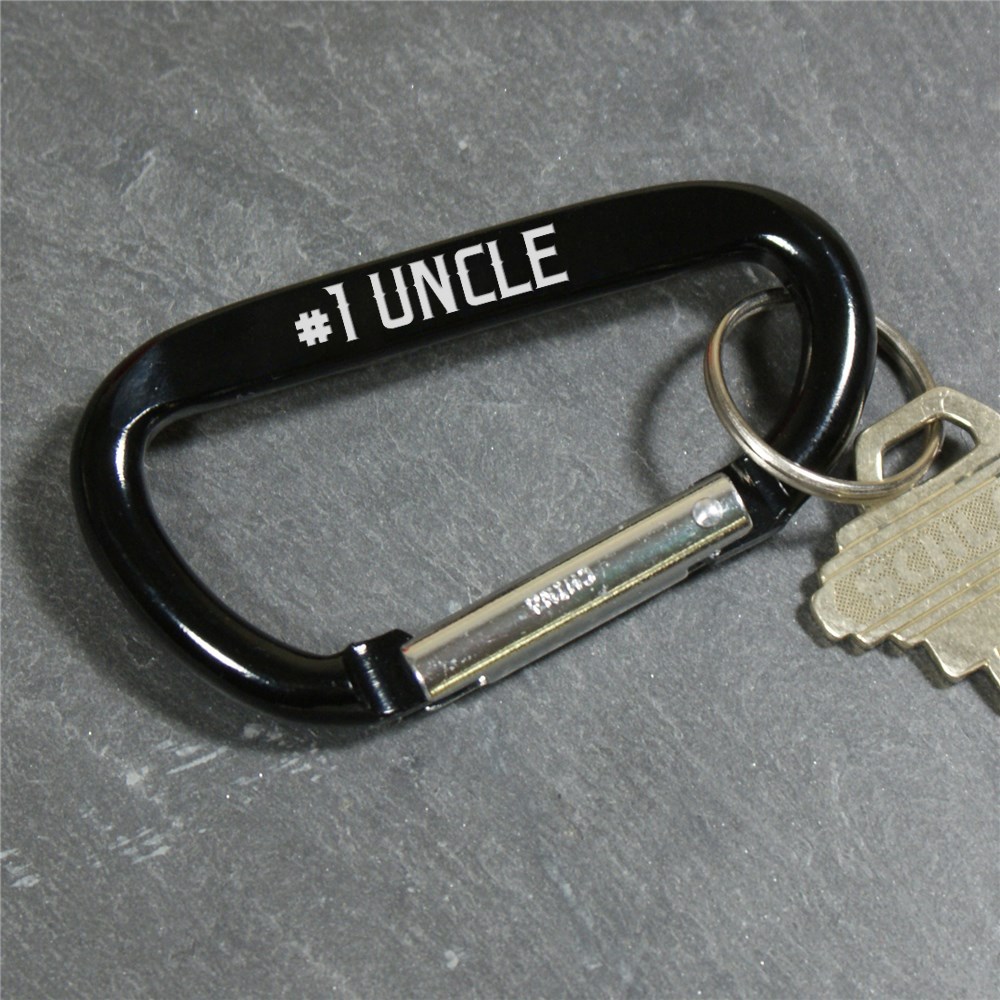 with anodized finish that comes in black, red or blue. Personalize this carabiner with any title. The #1 is static (ex: #1 Daddy, #1 Uncle, #1 Grandpa) Makes a great gift for Dad on Father's Day or anyone from