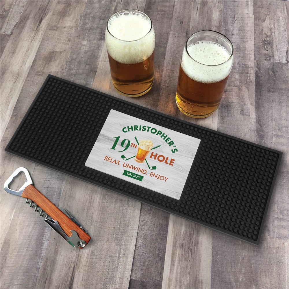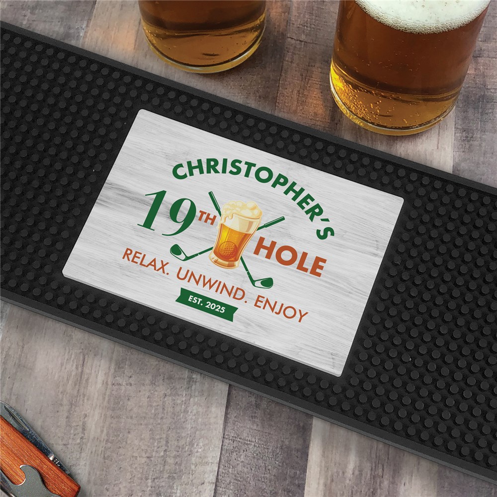 Our Personalized 19th Hole Bar Mat is the perfect accessory to add to any golfer's home bar!