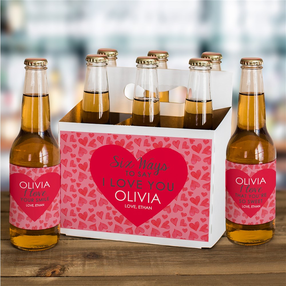 Show your love creatively this Valentine's Day with our Personalized 6 Reasons I Love You Beer Carrier and Labels Set.