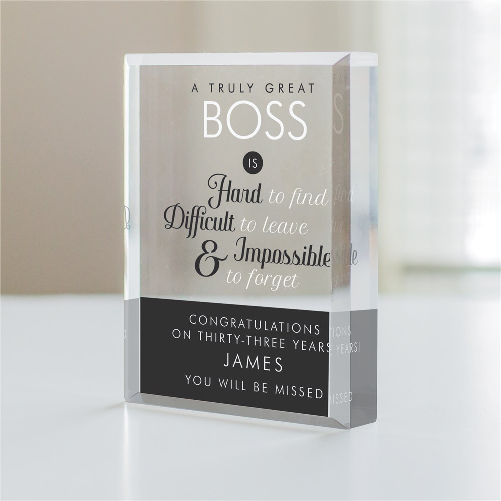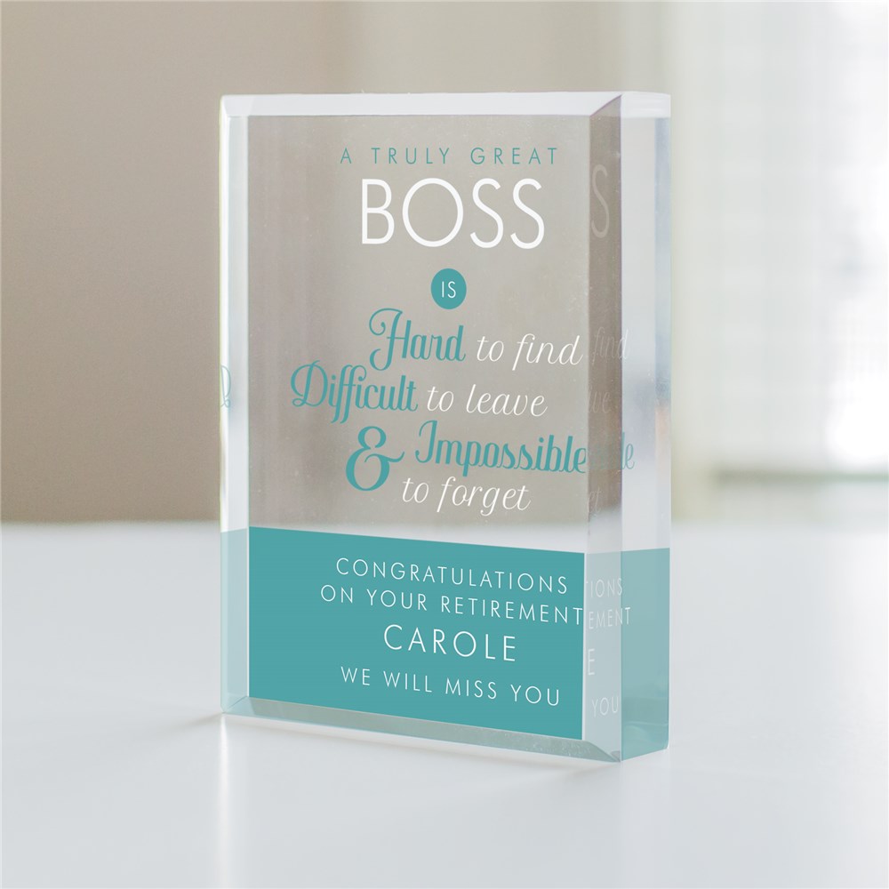 Our Personalized A Truly Great Boss Keepsake makes a great retirement gift for the best boss.
