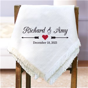 .Embroidered Arrows And Heart Wedding Throw Blanket