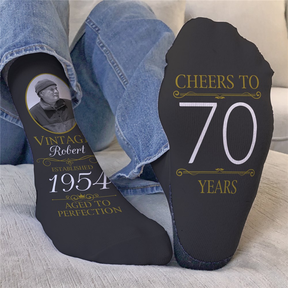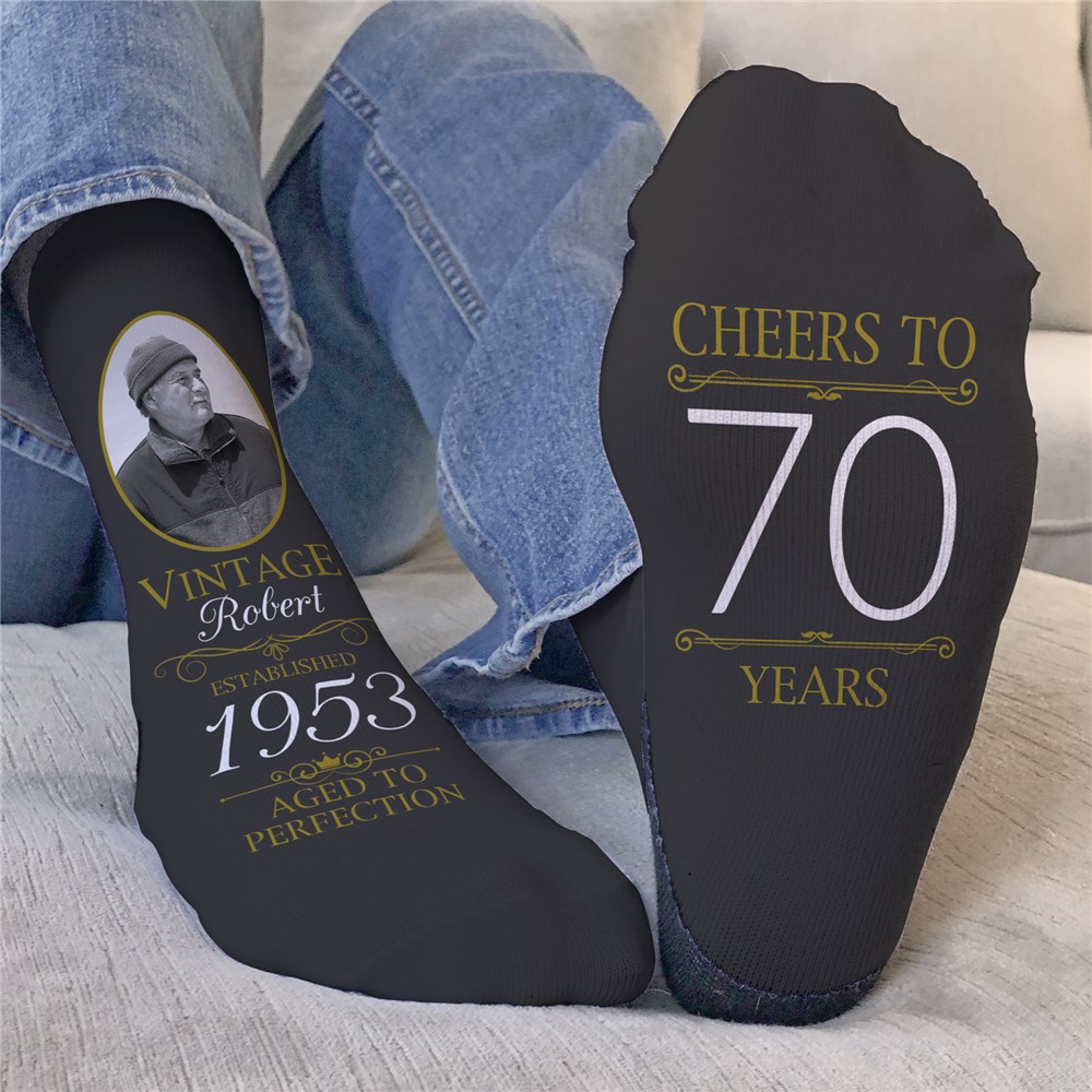 Celebrate your birthday with our Personalized Aged to Perfection with Photo Crew Socks.