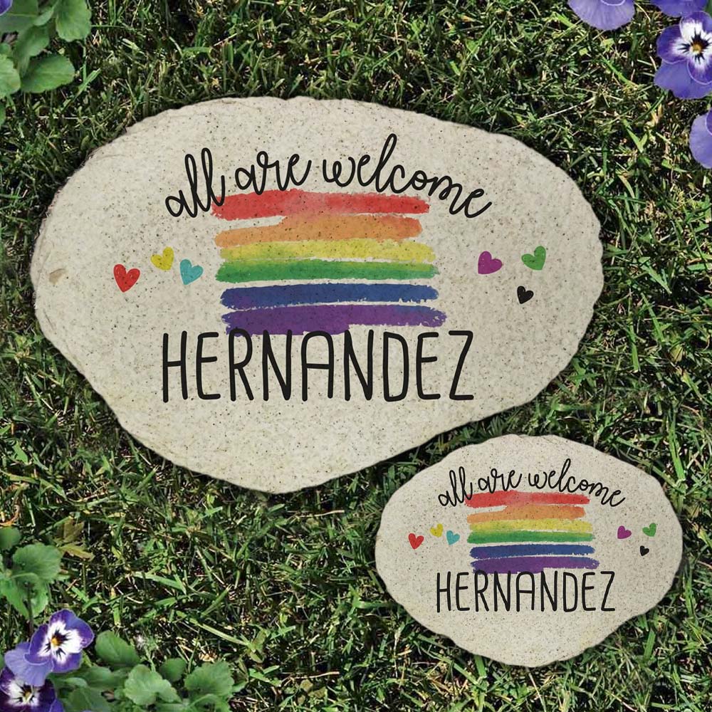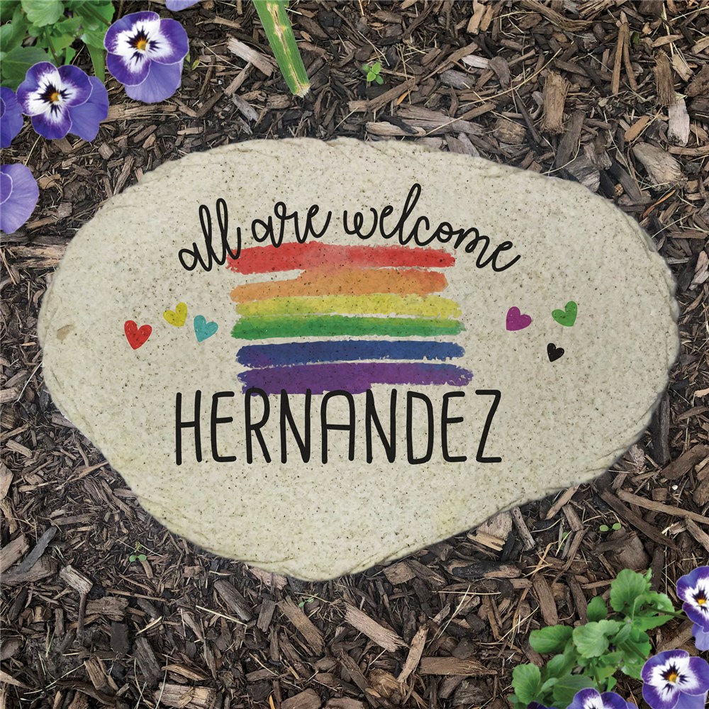 Let guests know everyone is welcome to your home, no matter how they identify with our Personalized All Are Welcome Flat Garden Stone.