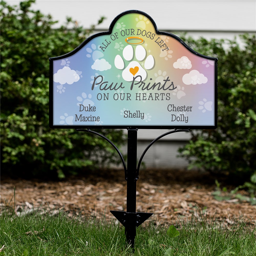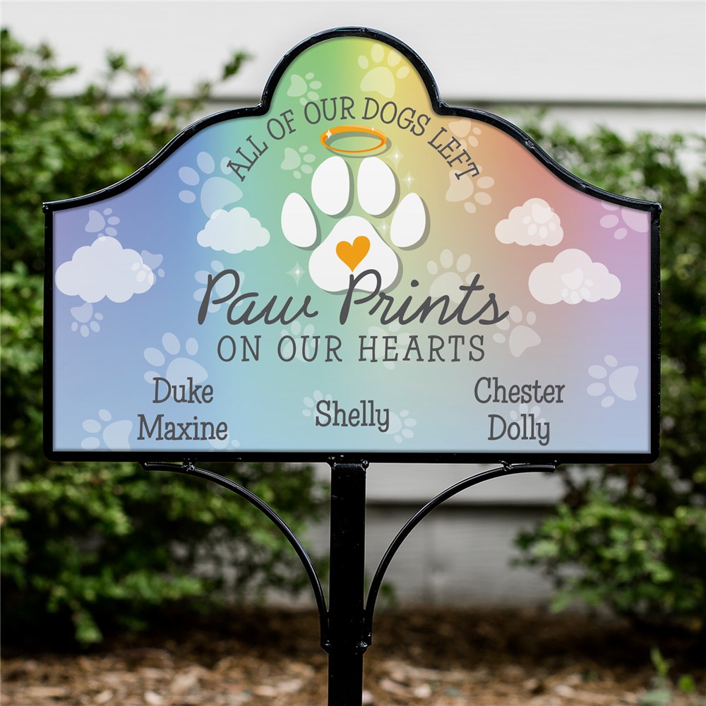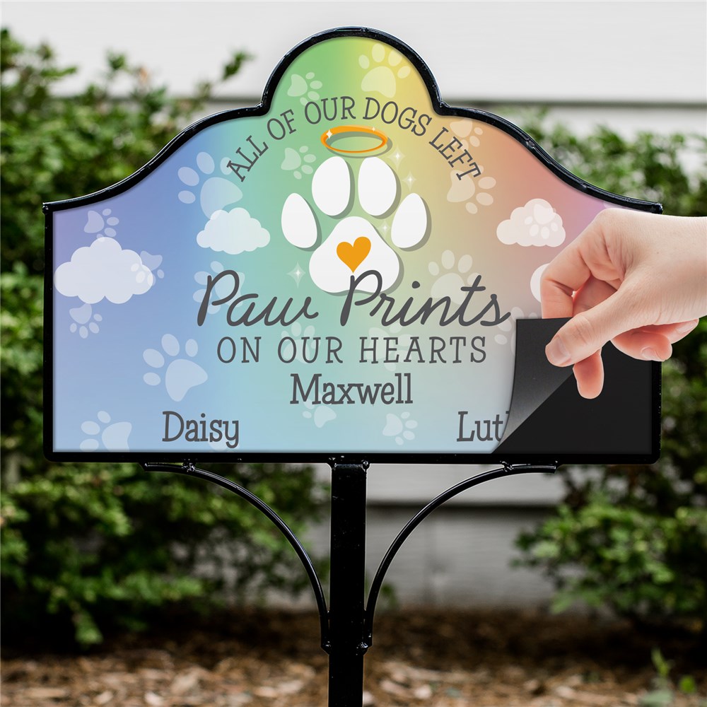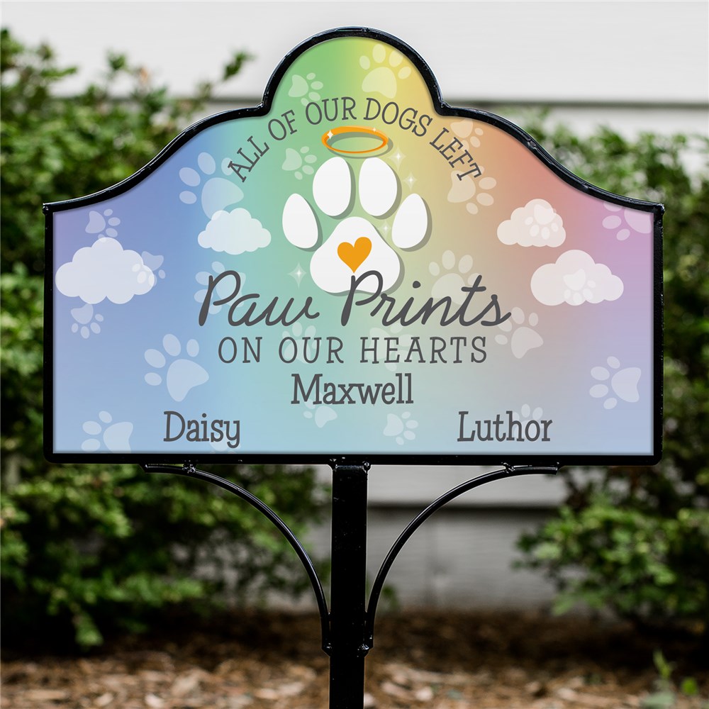 Every dog who has touched your heart will be memorialized with our Personalized All of our Dogs Left Paw Prints with Clouds Yard Magnet Set.