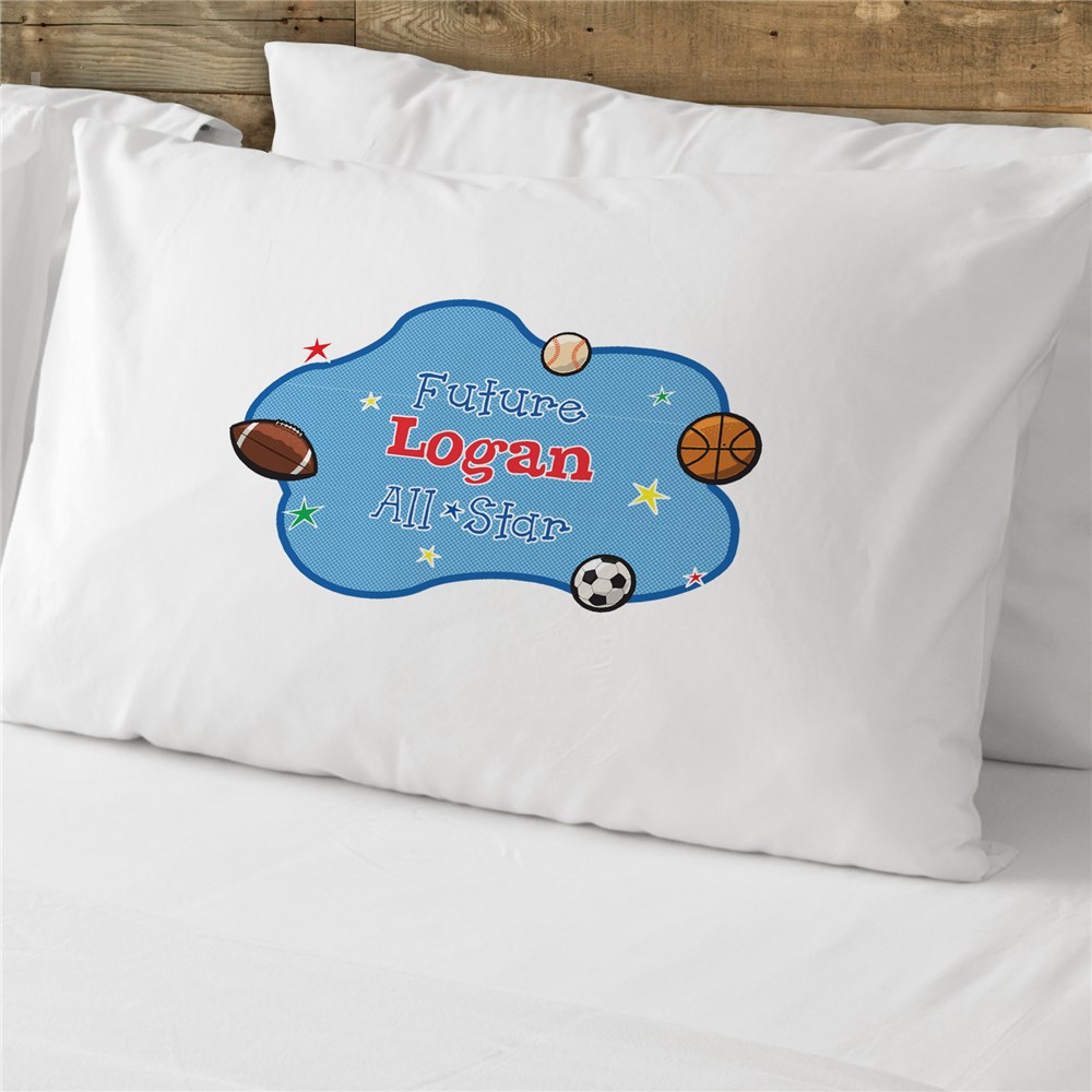 Your little All Star is going to be dreaming of playing sports while resting on this Personalized All Star Sports Cotton Pillowcase.