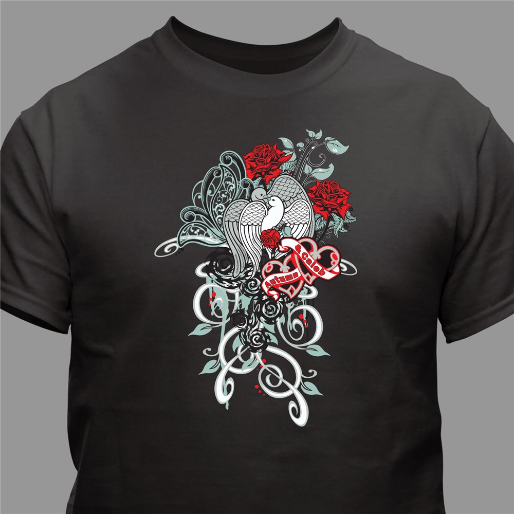 Our special, romantic Valentine's Day t-shirt makes a cute gift for any couple & any romantic occasion. Valentine's Day, Sweetest Day or special anniversary will be even better in matching Personalized Always & Forever Shirts. Express your true feelings vividly with one of these Personalized T Shirts for Valentine's Day that you can cherish for a lifetime. Our customized tee is available on our premium pre-shrunk 100% cotton black shirt, machine washable in adult sizes S-3XL." Personalize your romantic t-shirt with any two names.