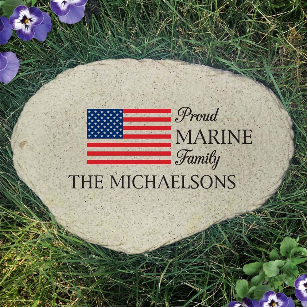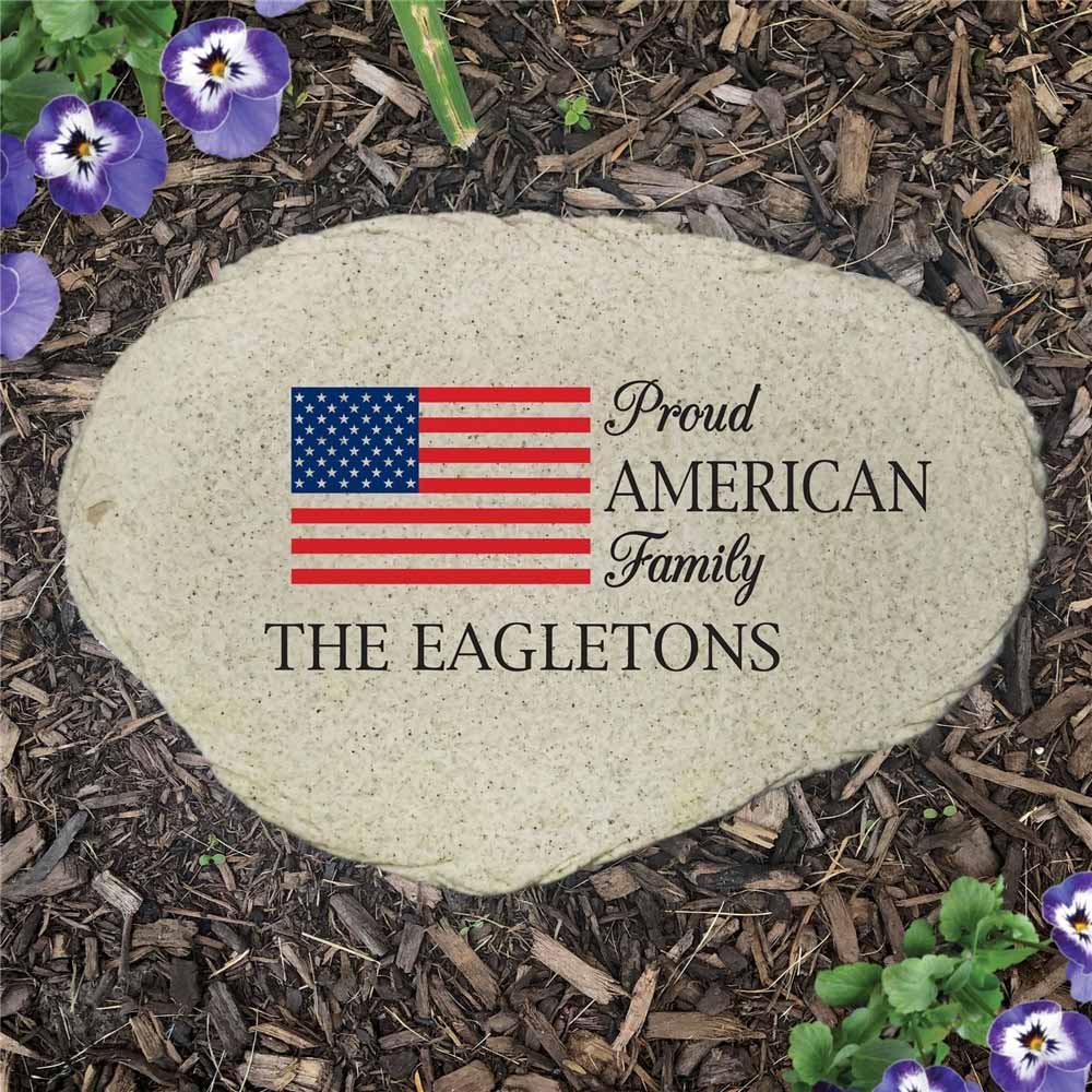 Our Personalized American Flag Proud Family Flat Garden Stone is ideal outdoor decor for any military family.