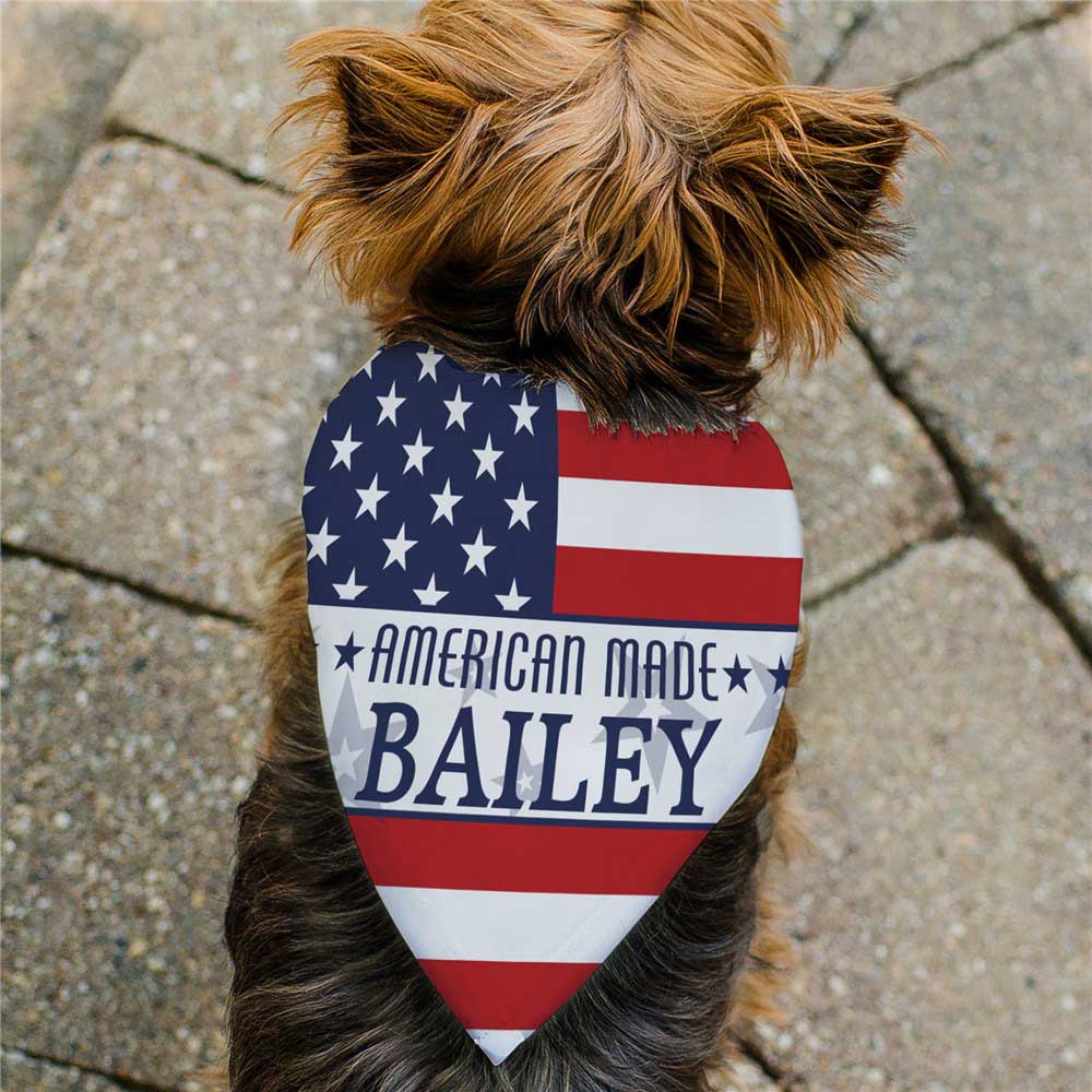 Your four legged friend will be happy to show off their patriotic side with these flag themed American Made Personalized Pet Bandanas.