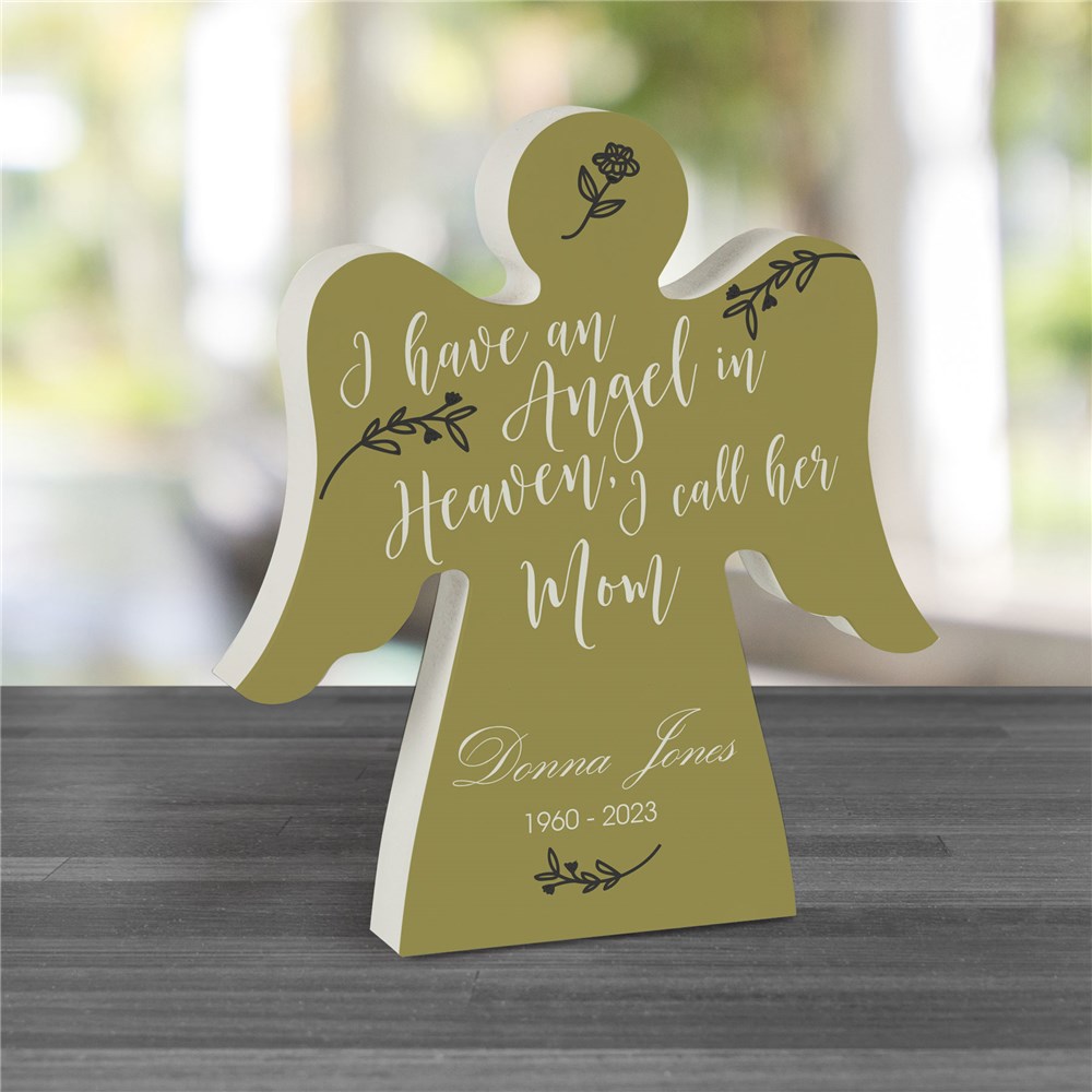 Our Personalized Angel in Heaven Angel Shaped Sign is a beautiful reminder for anyone who has lost their mother that she is watching over them from heaven.