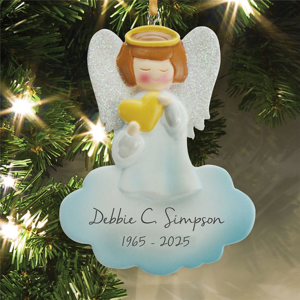 Even though your loved one is not here anymore, they will always be with you this Christmas season with our Personalized Angel Memorial© Ornament.