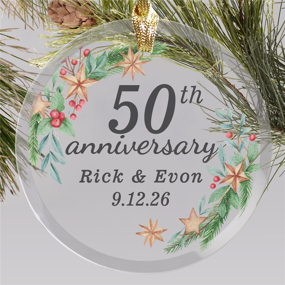 Personalize this ornament with any anniversary year, suffix and 2 custom message lines.