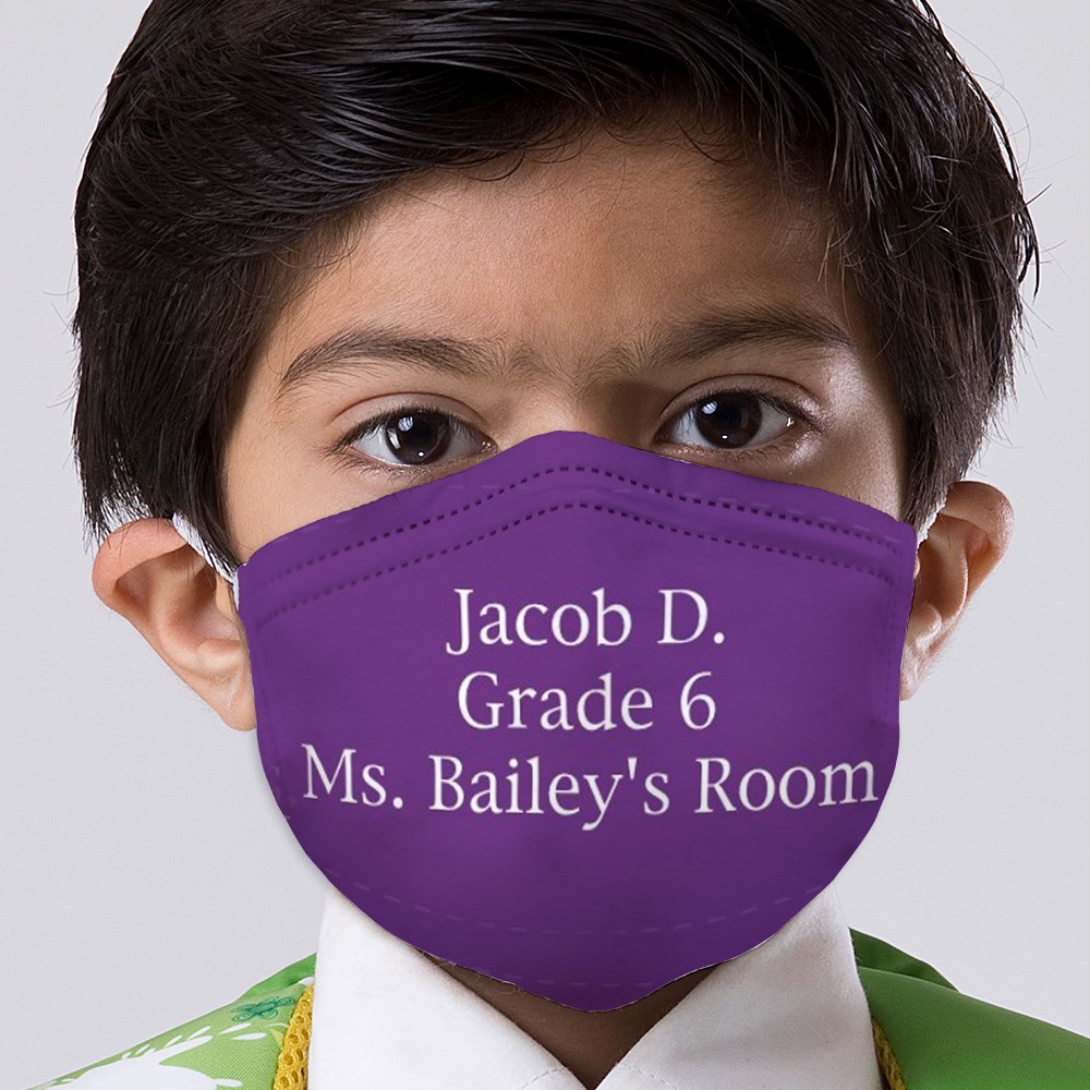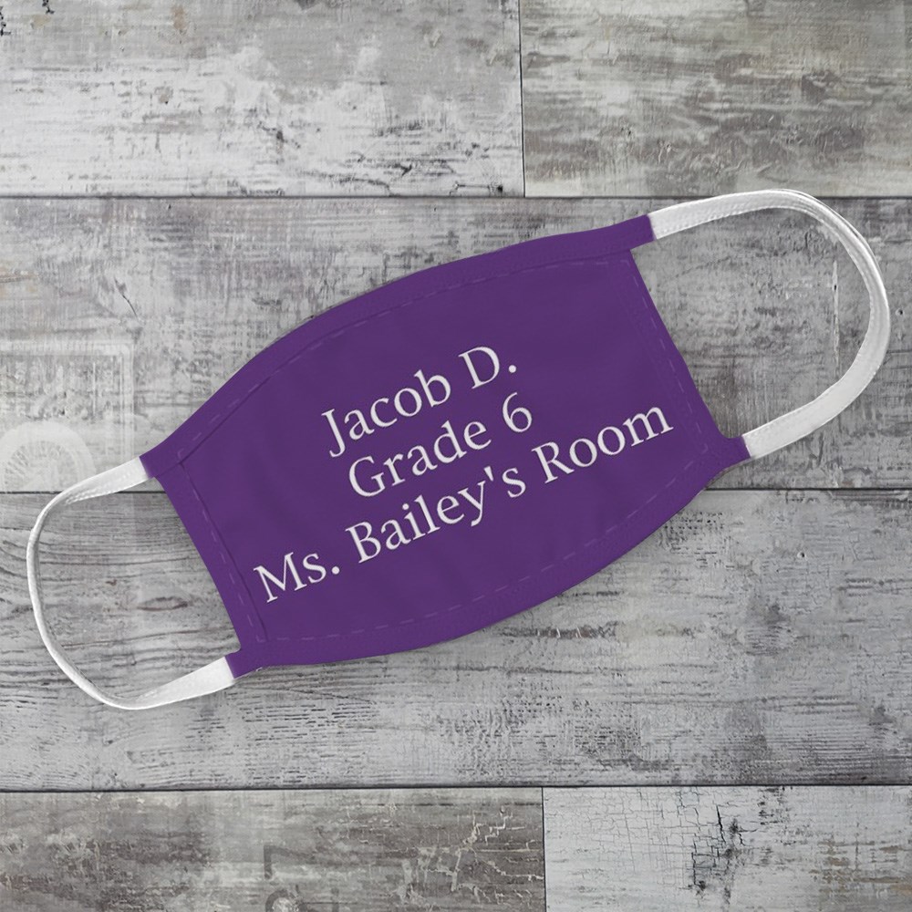 This mask can be personalized with your choice of color, choice of font, and 3 custom message lines.