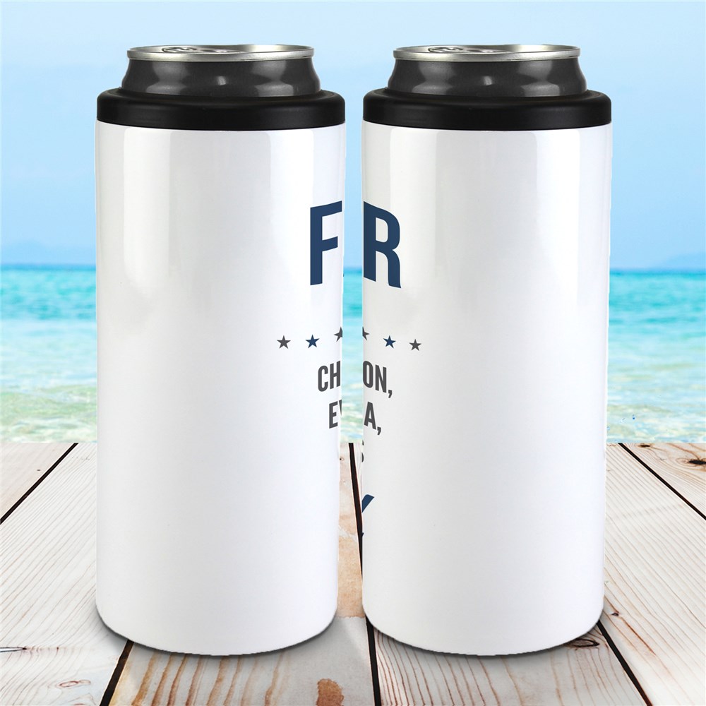Our Personalized Anybody Can Be A Dad Slim Can Cooler makes for a great gift for Dad or Grandpa to enjoy at home or by the pool.