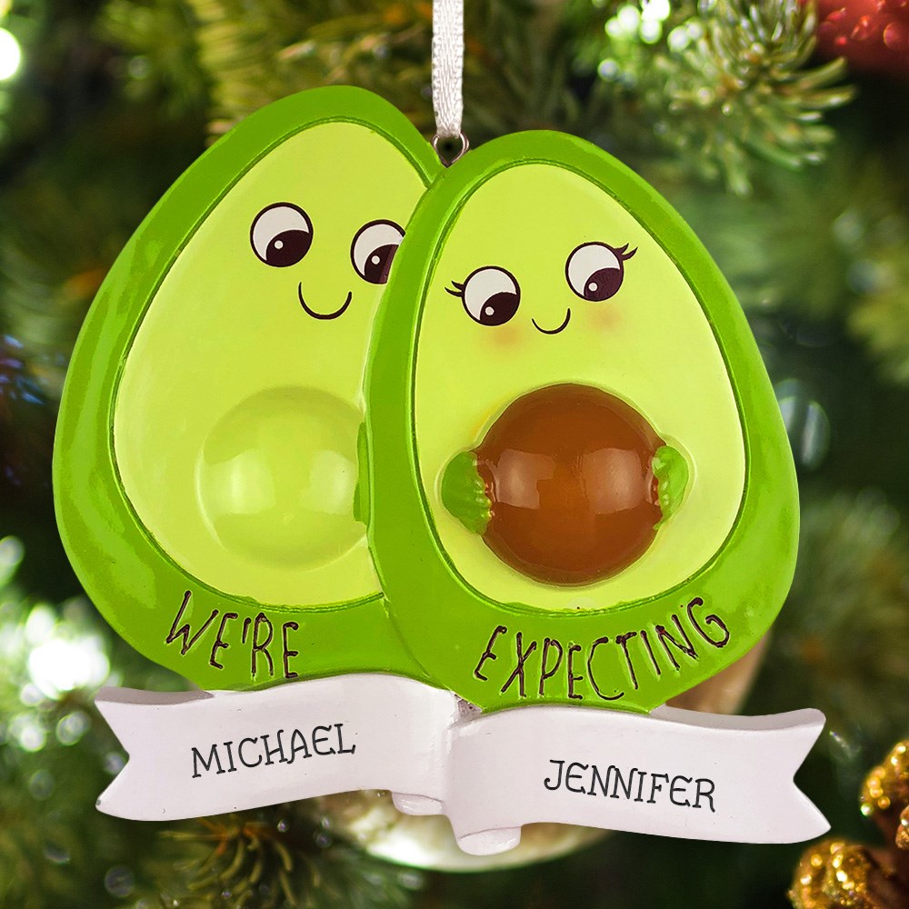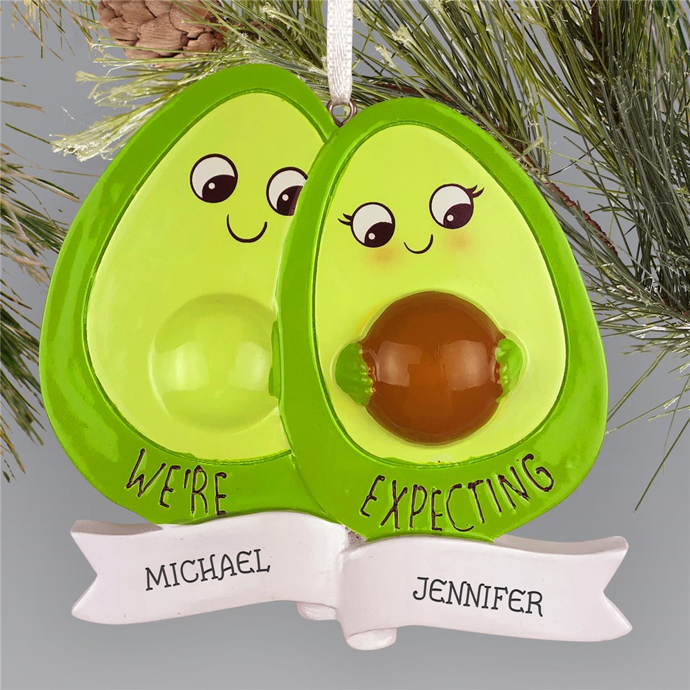 Celebrate your new arrival while creating a special Christmas keepsake with our Personalized Avocado We're Expecting Ornament.