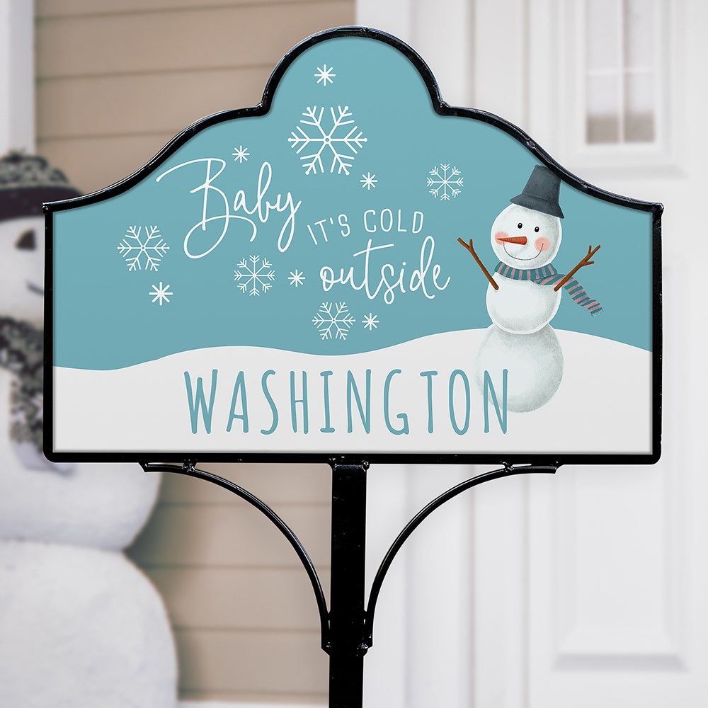 Add some cheer to your front yard this winter with our Personalized Baby It's Cold Outside Magnetic Yard Sign.