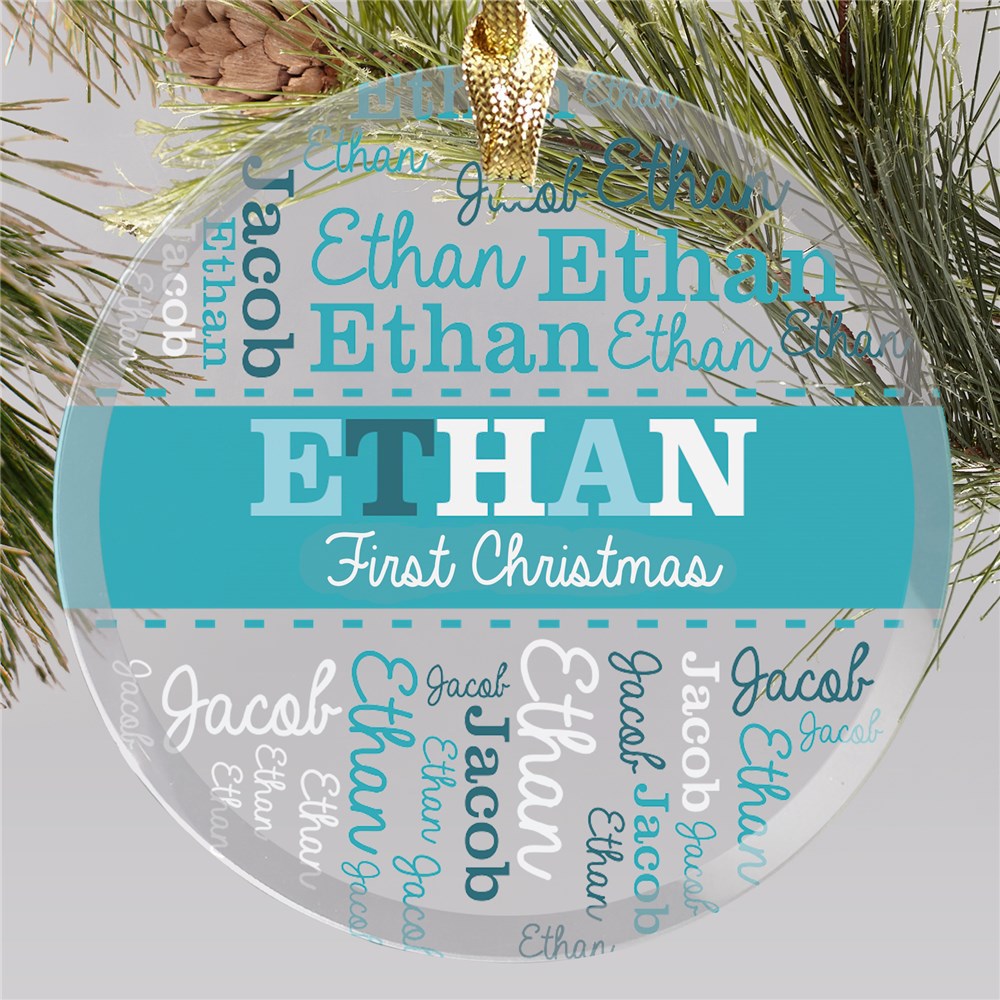 You will always remember your baby's very first Christmas with our Personalized Baby's First Christmas Word-Art Round Glass Ornament.
