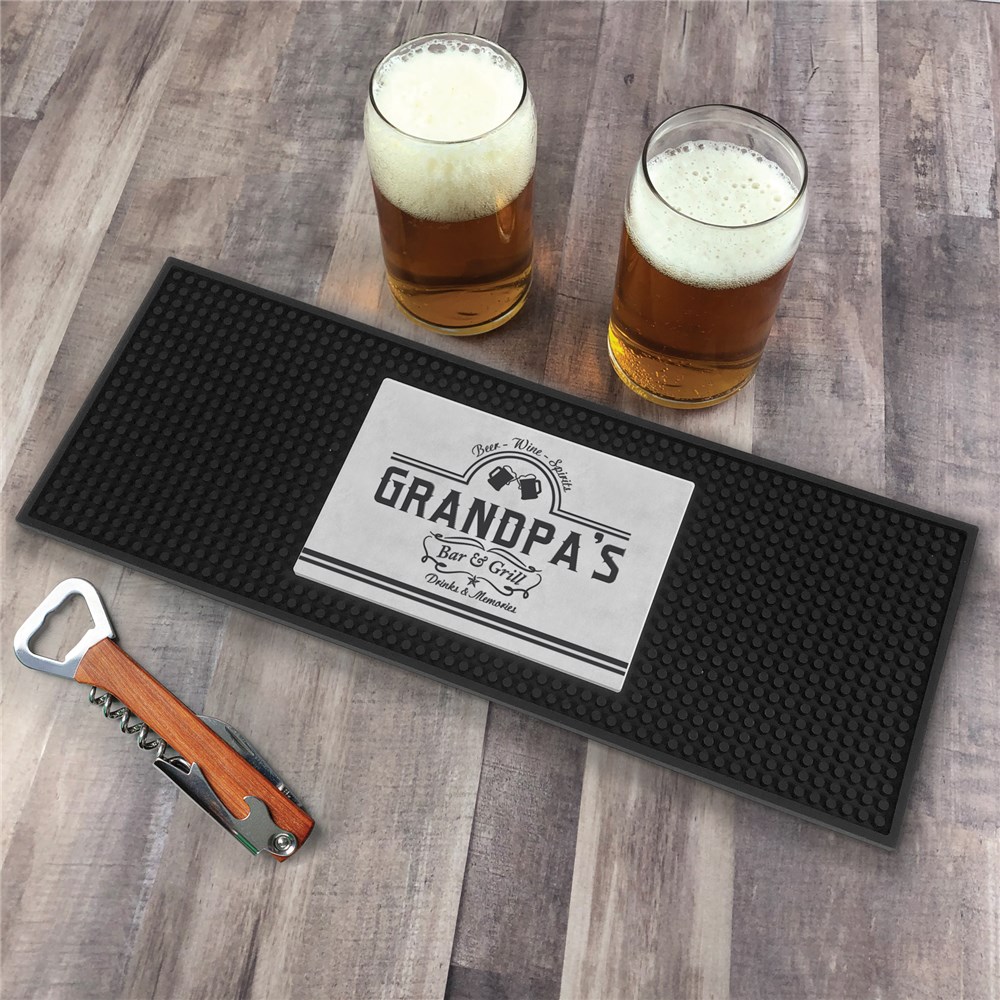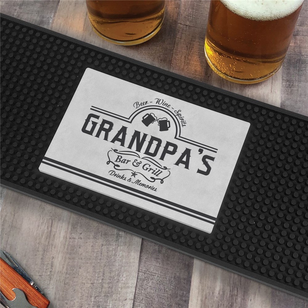 Our Personalized Bar and Grill Bar Mat will help keep Dad's home bar clean from spills.