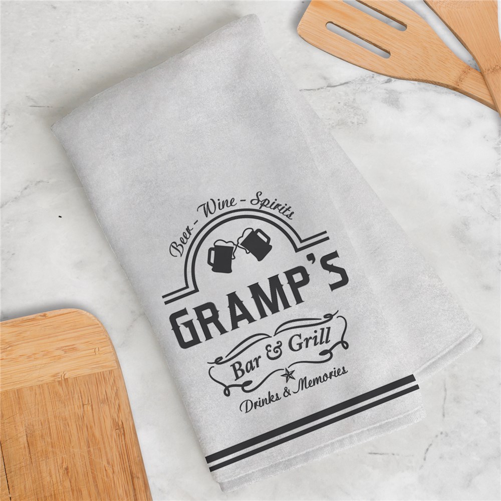 Our Personalized Bar and Grill Dish Towel is a must-have for any grill master Dad or Grandpa with a home bar.