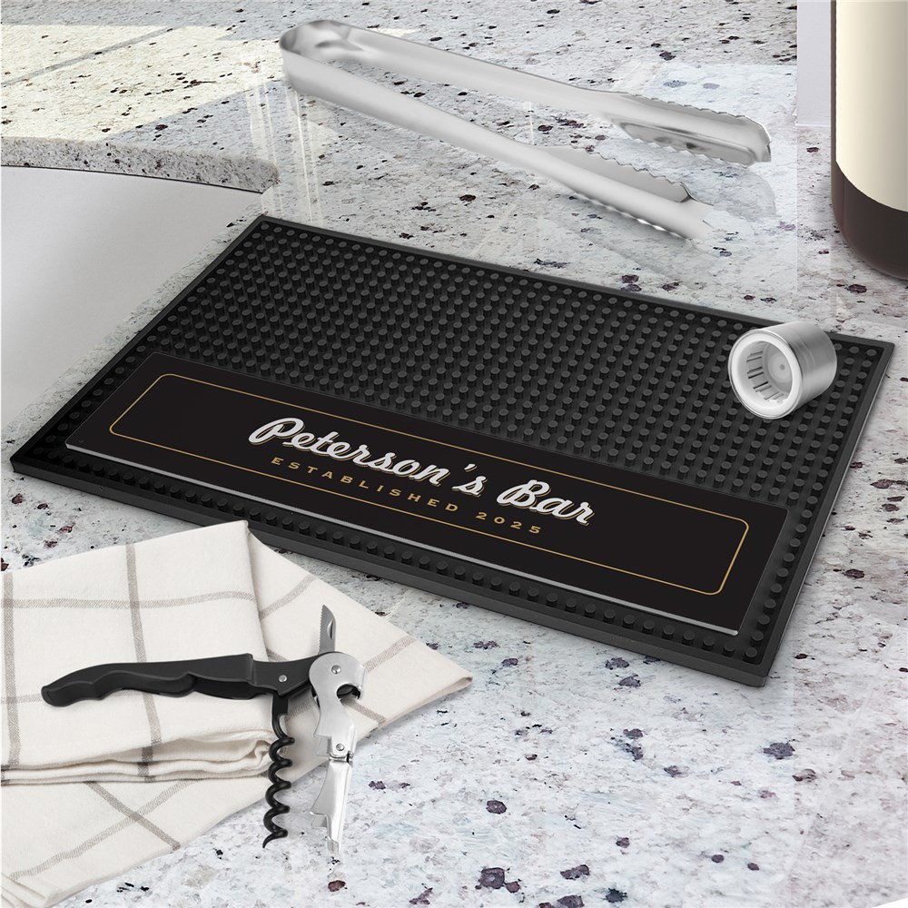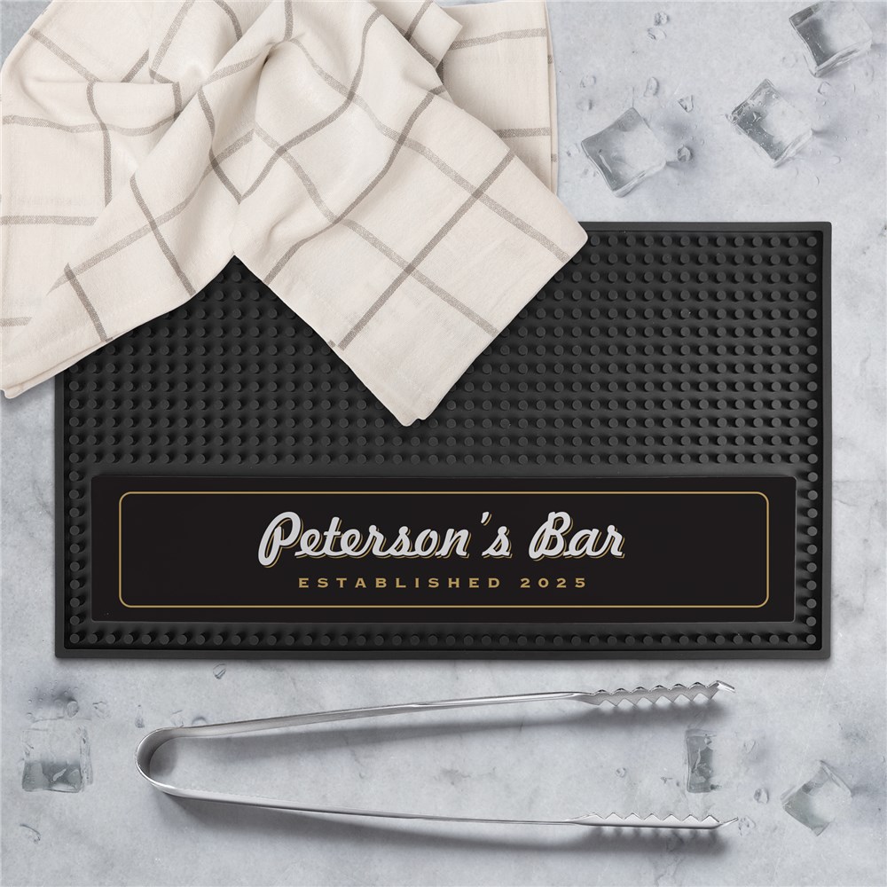 Create your own unique bar setup with this fully customizable Personalized Bar Established Rectangle Bar Mat. Personalize both lines of text with any name, phrase, or message — whether it’s “Peterson’s Bar,” “Mike’s Pub,” or something completely original. This stylish and durable mat keeps your bar surface protected while adding a personal touch that’s perfect for home bars, game rooms, or as a one-of-a-kind gift for any entertainer.