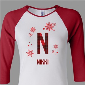Personalized Name & Plaid Initial Women's Raglan Shirt