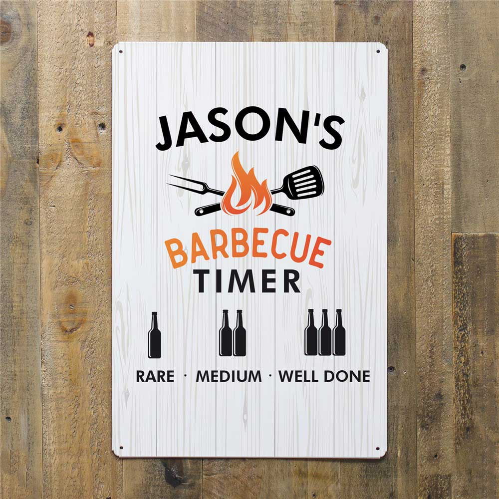 Any beer drinker and barbecue lover will appreciate this fun Personalized BBQ Timer Metal Sign.