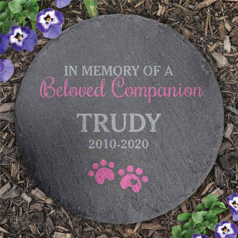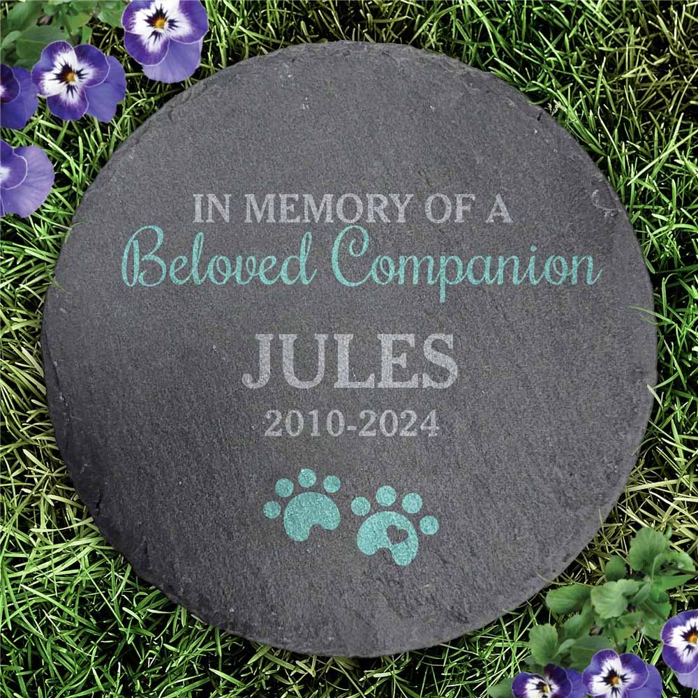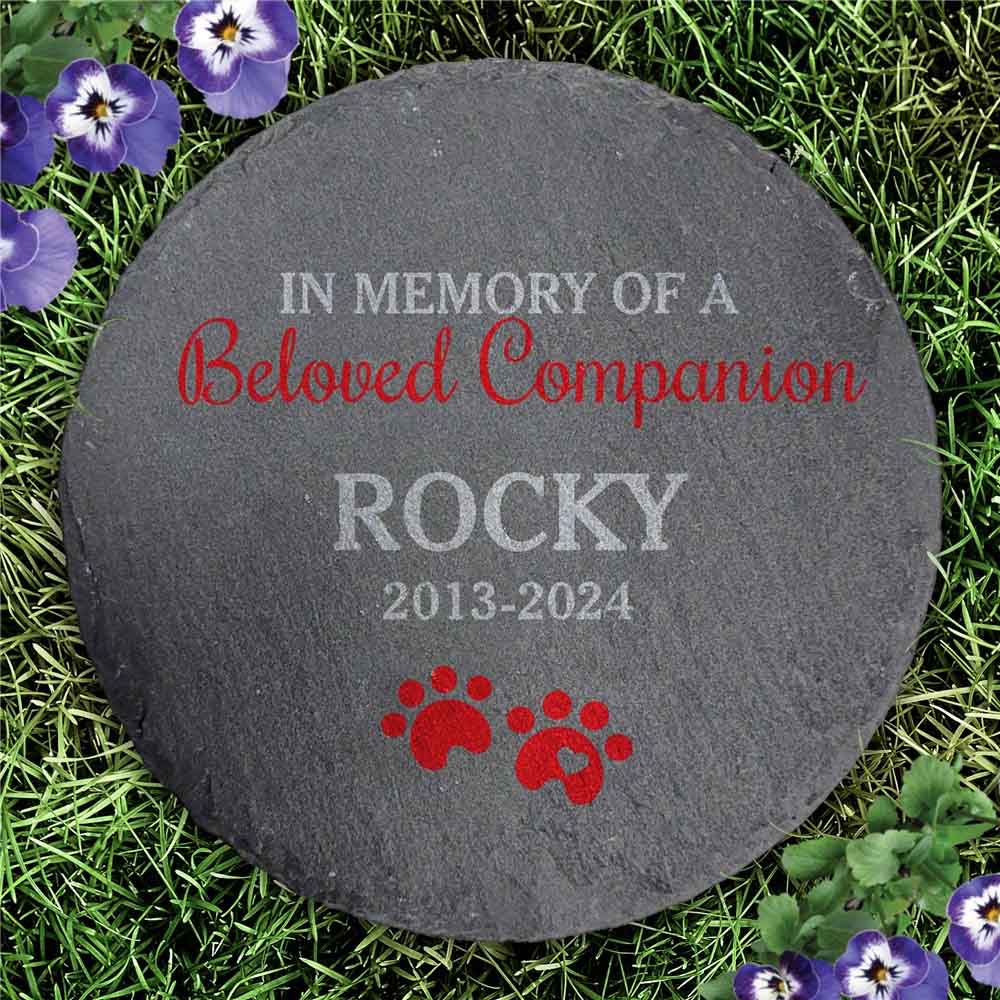 Pay tribute to your precious four legged friend with our Personalized Beloved Companion Round Slate Stone.