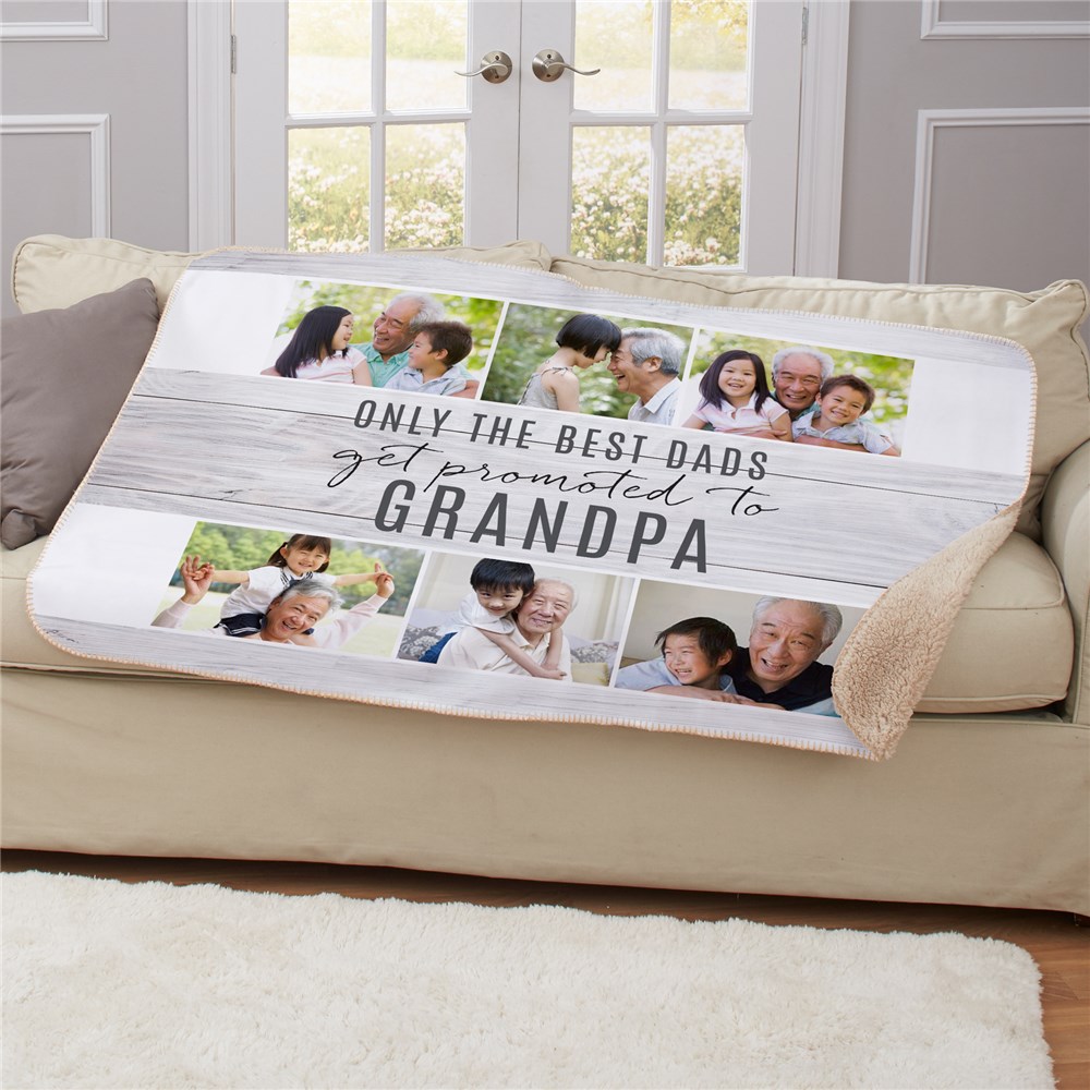 Grandpa can nap comfortably with our Personalized Best Dads Get Promoted Sherpa Blanket.