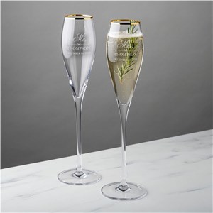 .Engraved Wedding Couple Gold Rim Champagne Flutes