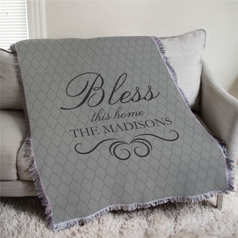 Our Personalized Bless This Home 50x60 Afghan Throw is perfect to have in your family room all winter long.