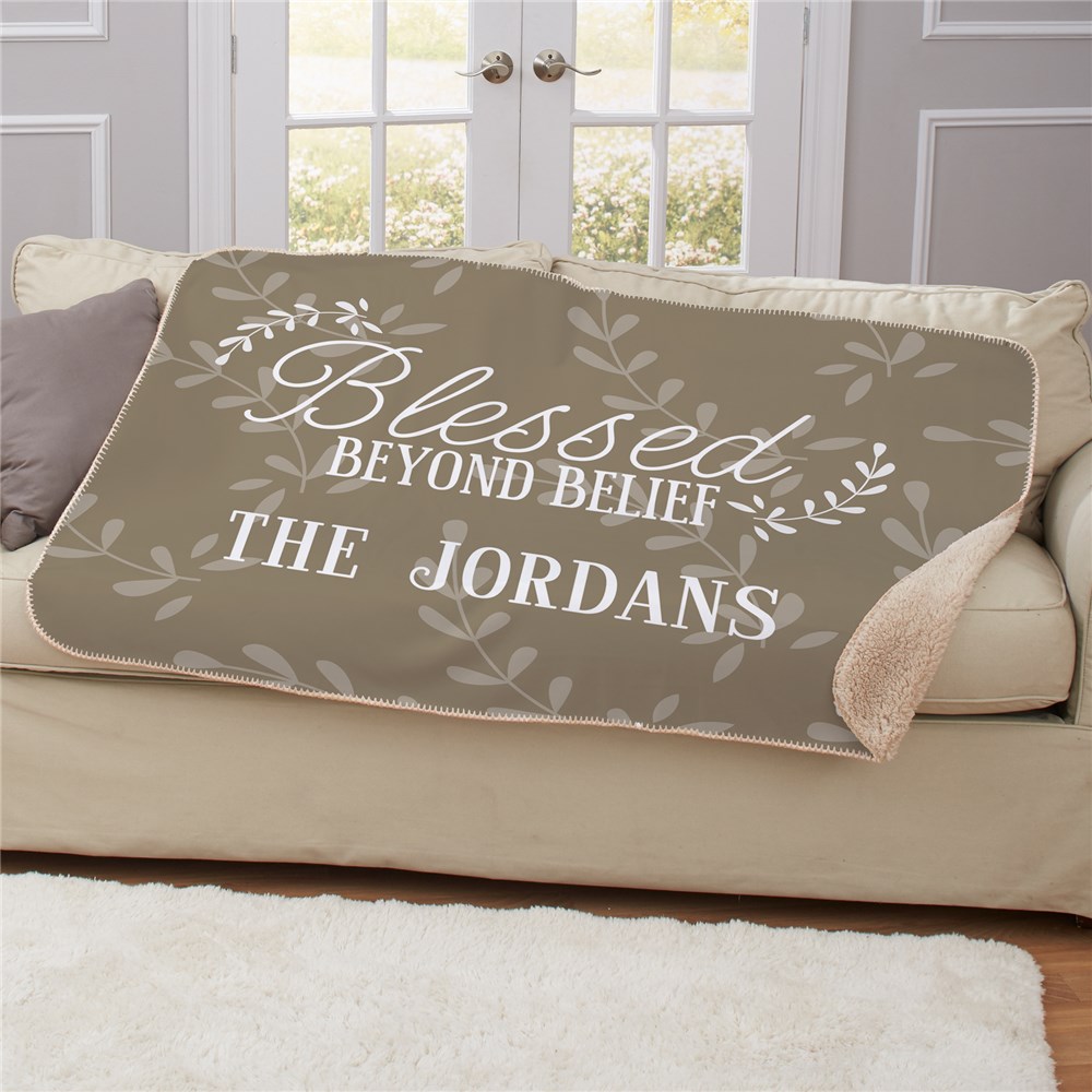 Get ready to snuggle with our Personalized Blessed Beyond Belief Sherpa Blanket.