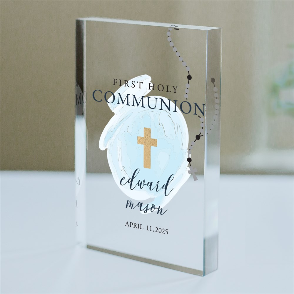 Remember this special occasion in your child's life with our Personalized Blue Cloud Rosary Acrylic Keepsake!