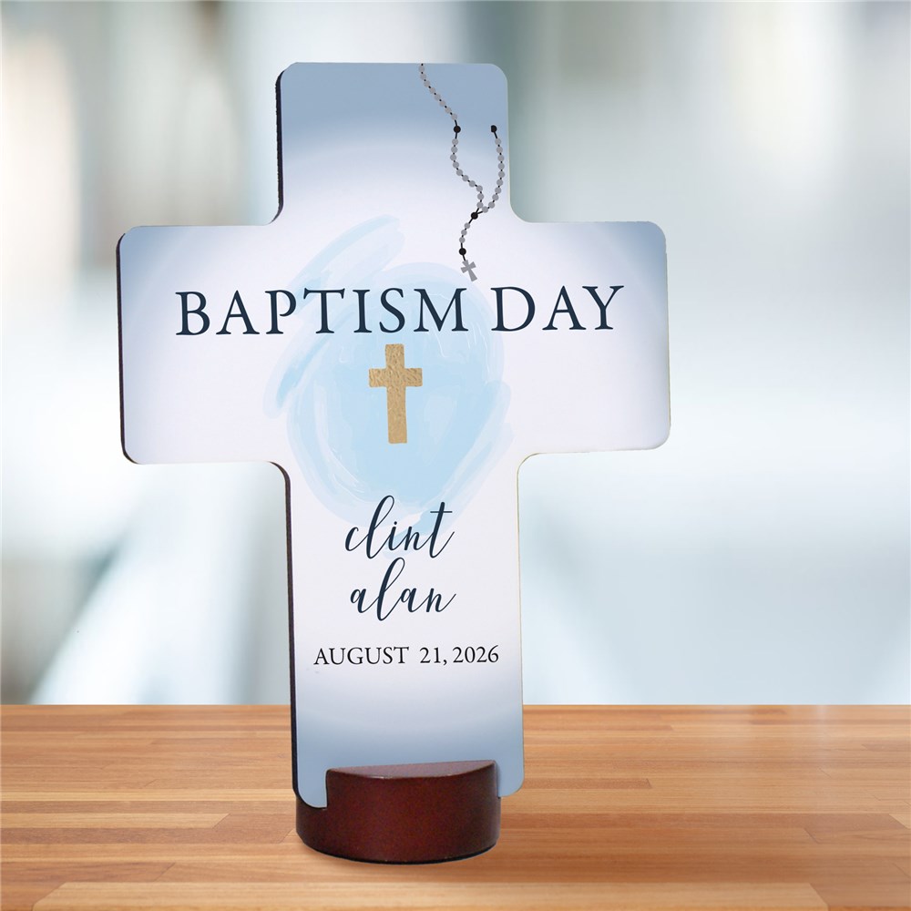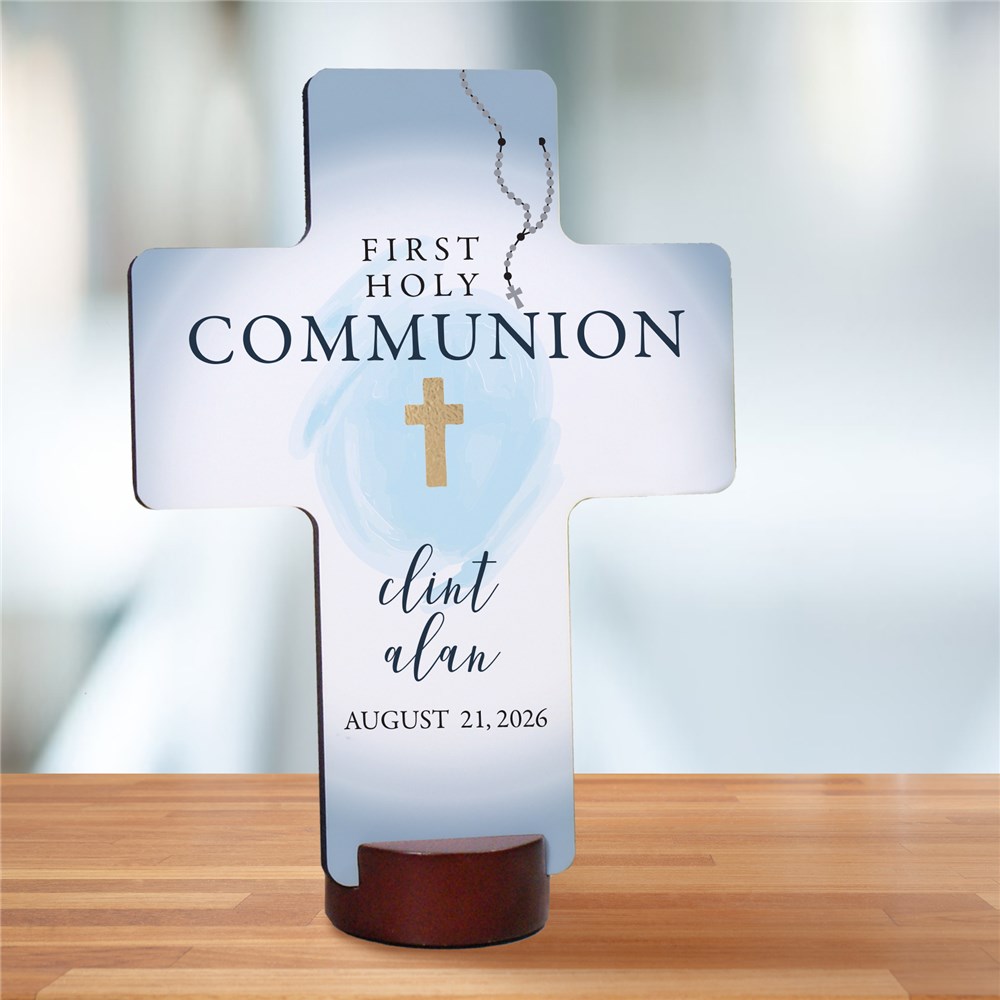 Congratulate any child and their family on this important day with our Personalized Blue Cloud Rosary Cross Keepsake!