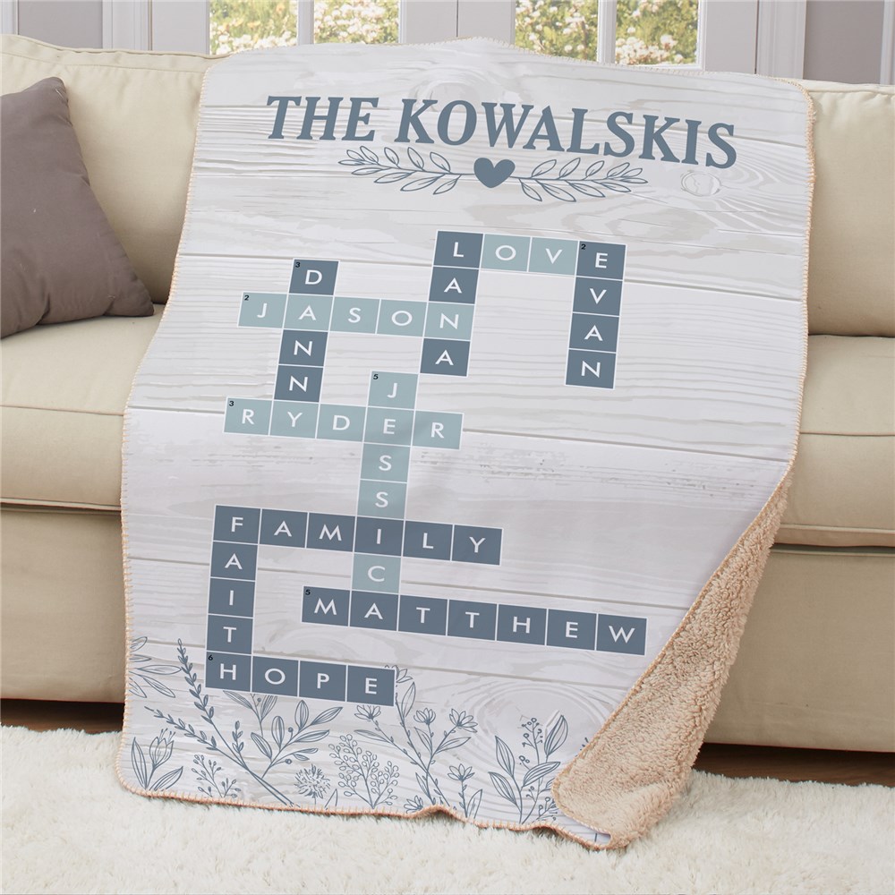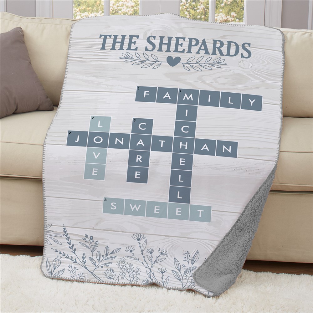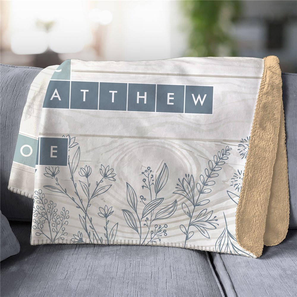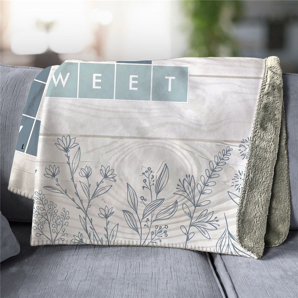 Personalized Blue Floral Crossword 50x60 Sherpa Blanket