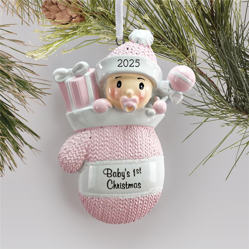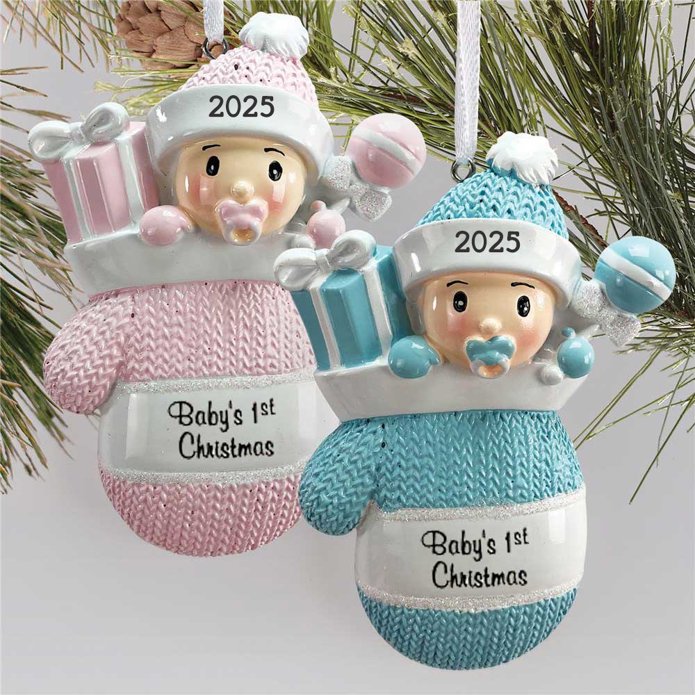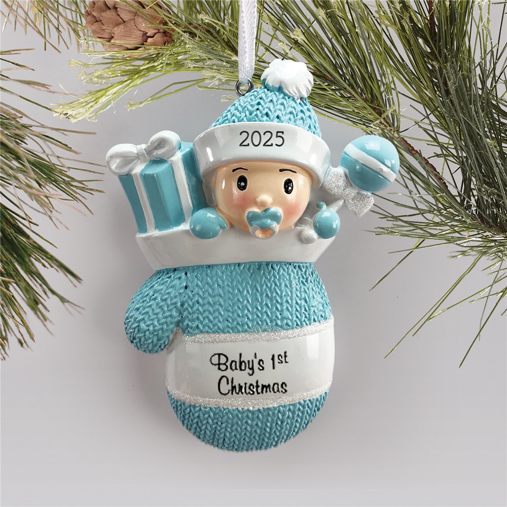 Remember your baby's first Christmas with our Personalized Mitten Baby Ornament.